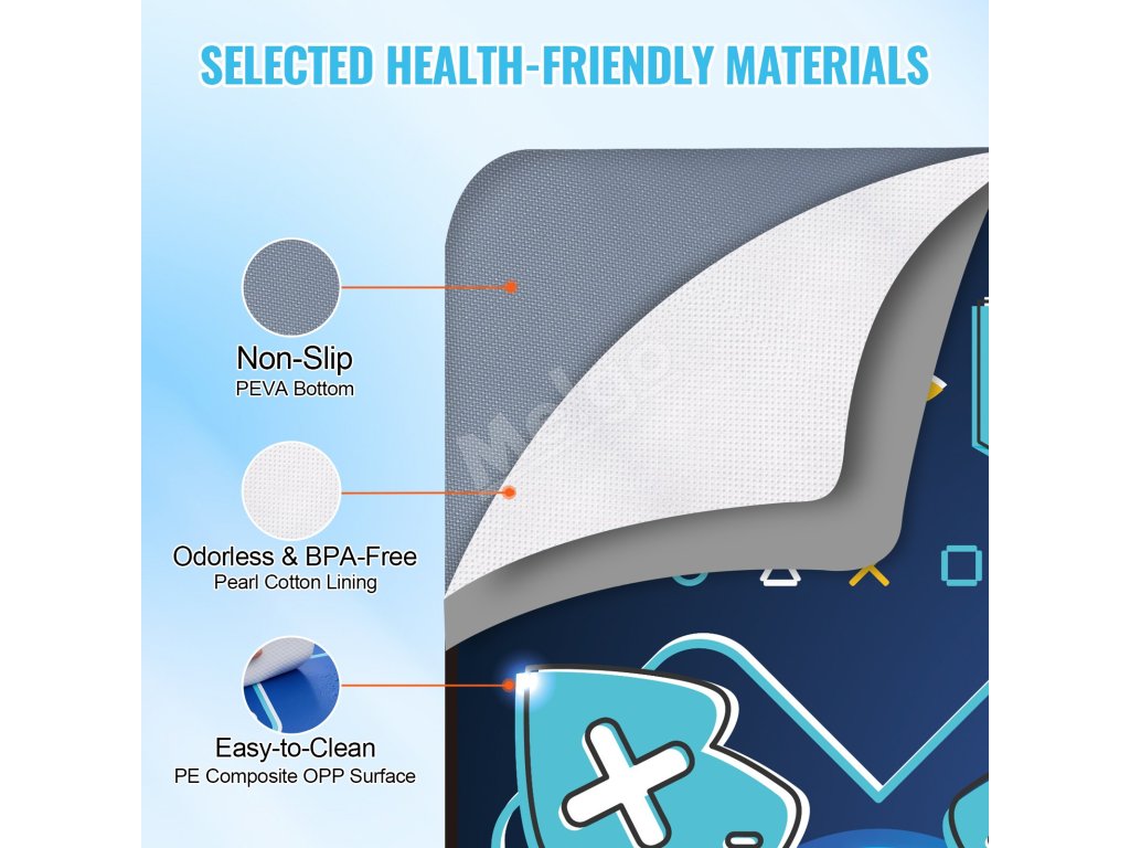 Naša tanečná podložka je užívateľsky prívetivá a intuitívna, ľahko ju pochopia a hrajú sa na nej aj tí najmenší. Je vyrobená z odolného vinylu s PE-kompozitným povrchom OPP, je robustná a má dlhú životnosť. Protišmyková spodná časť z materiálu PEVA ju udrží na mieste, takže sa môžete sústrediť na zábavu!