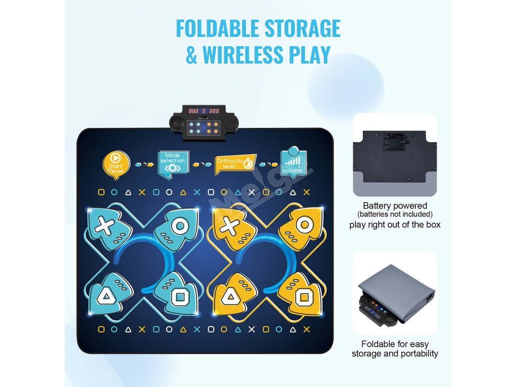 Mäkká a skladacia elektronická tanečná podložka sa úhľadne skladá na pohodlné skladovanie a ľahko sa zmestí do tašky na dobrodružstvá na cestách. Napájajte ju 3 batériami AA (nie sú súčasťou balenia) a tancujte kedykoľvek a kdekoľvek!