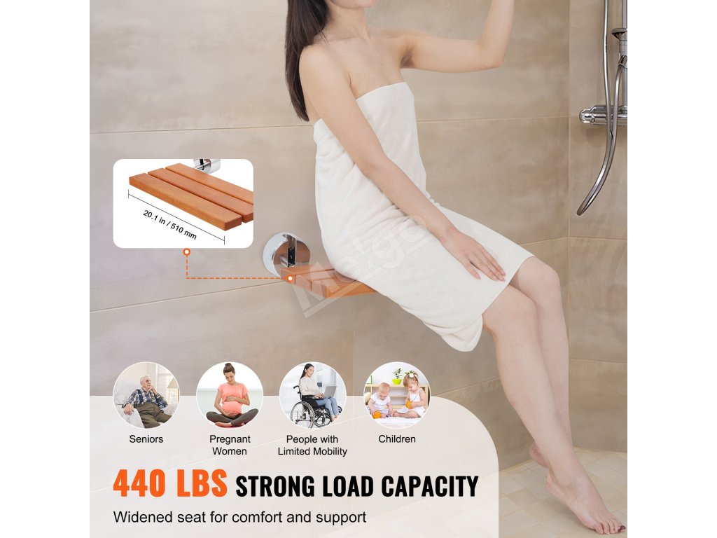 Skladacie sedadlo do sprchy na stenu, 20.1"×13.2", nosnosť 440 lbs