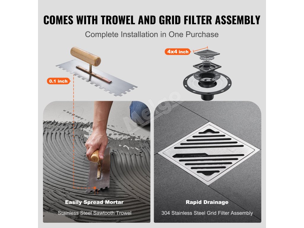 mriežka z nehrdzavejúcej ocele 304, schopná odolávať tlaku a treniu počas každodennej chôdze a státia, príruby z materiálu ABS, mimoriadne pevné a odolné, poskytujúce spoľahlivú ochranu pri požiadavkách na vodotesnosť, spĺňajúce vysokokvalitné potreby profesionálov a obyvateľov.
