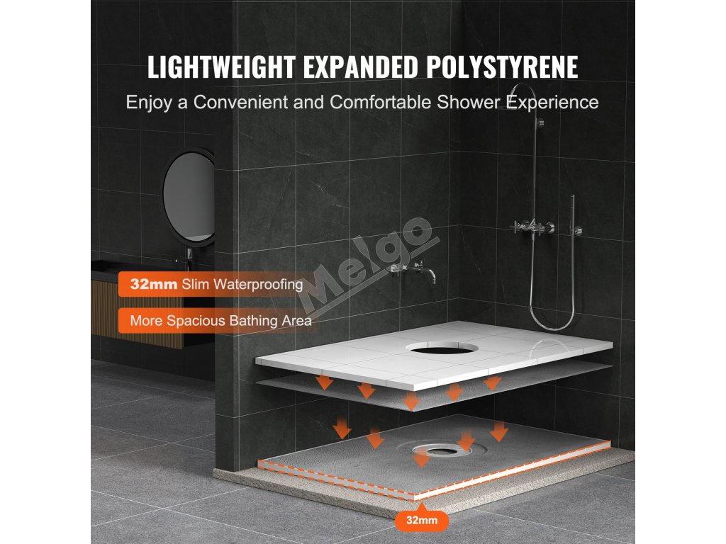 Sprchová vanička obsahuje 8-milovú fóliu a elegantný vodotesný dizajn, ktorý účinne zabraňuje prenikaniu kvapaliny. Doska EPS pomáha udržiavať svieže a zdravé prostredie v sprchovacom priestore, vďaka čomu si môžete naplno užívať sprchovanie.