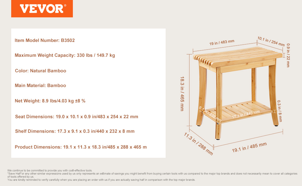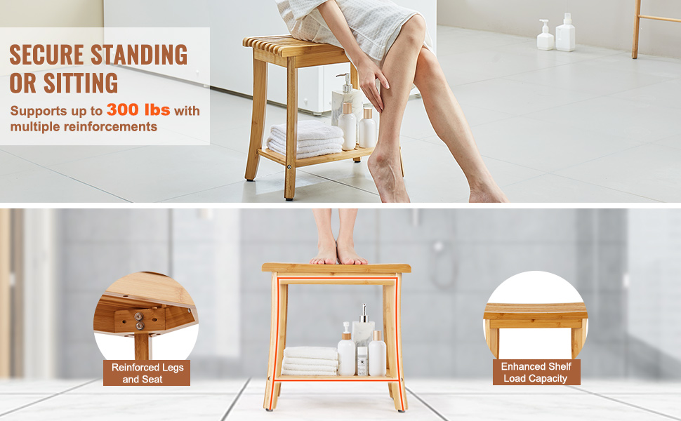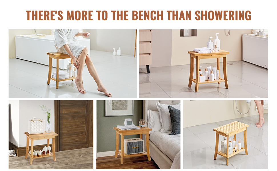 Hľadáte organizér do kúpeľne alebo spoľahlivé sedadlo do sprchy? Nehľadajte nič iné ako našu vodotesnú bambusovú lavicu do sprchy. Je odolná vďaka dvojvrstvovej konštrukcii a unesie až 330 kg. Možno ju použiť ako príručný stolík alebo stojan na topánky a bez problémov zapadne do kúpeľne, obývačky aj spálne.