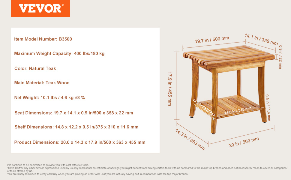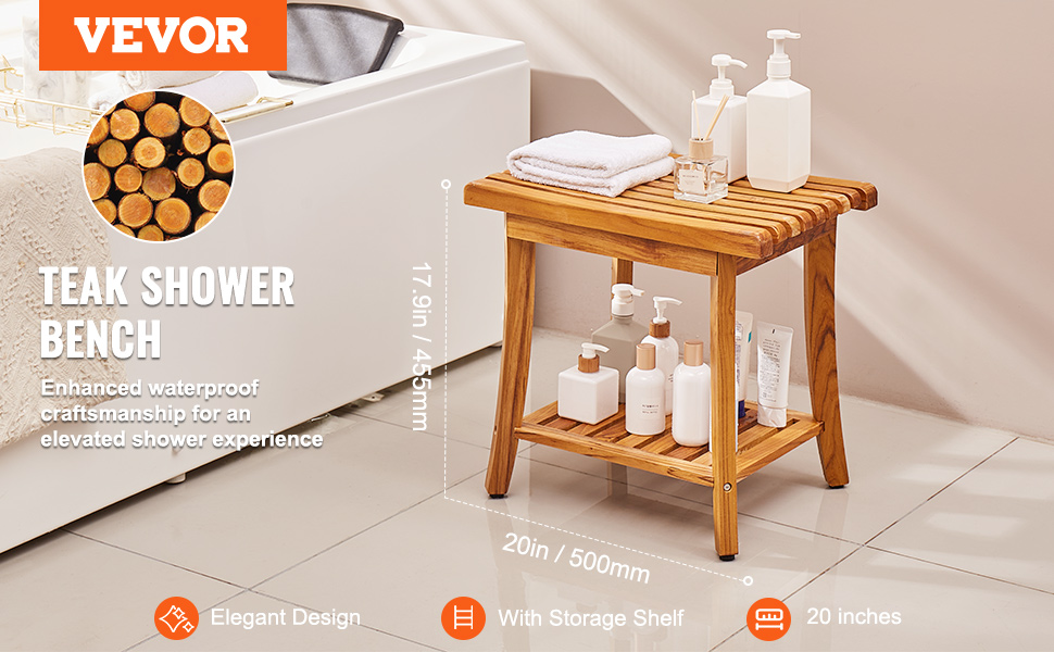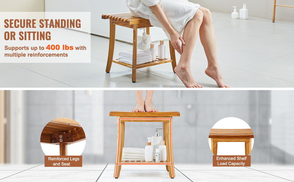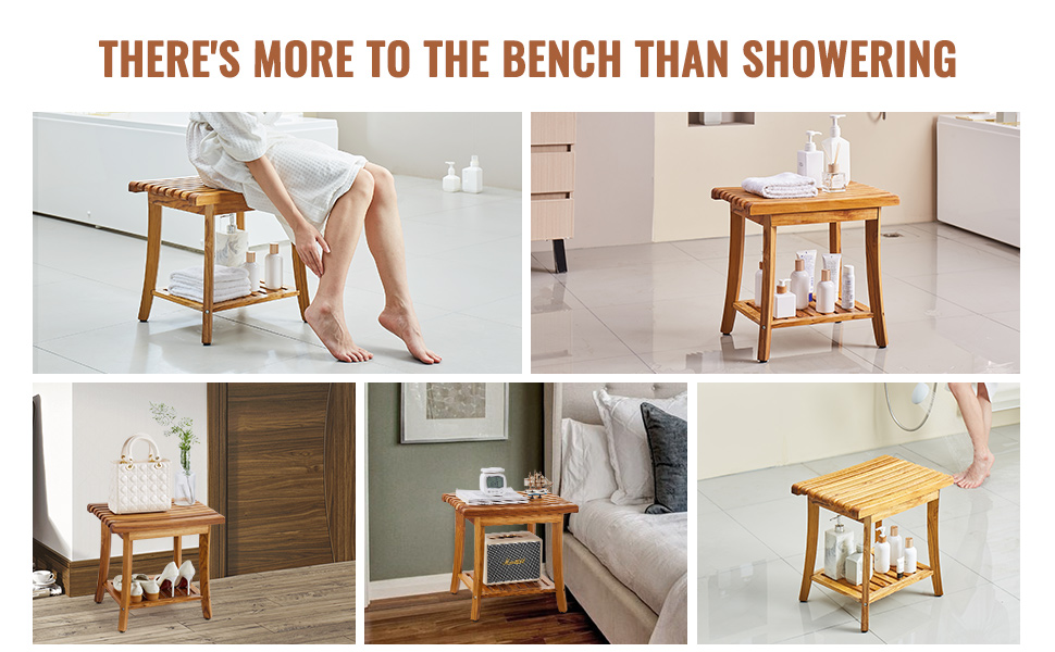 Hľadáte organizér do kúpeľne alebo spoľahlivé sedadlo do sprchy? Nehľadajte nič iné ako túto vodeodolnú lavicu do sprchy z teakového dreva. Je pevnejšia ako bambus a vďaka dvojvrstvovej konštrukcii vydrží až 400 kg. Možno ju použiť ako príručný stolík alebo stojan na topánky a hodí sa do kúpeľne aj obývačky.