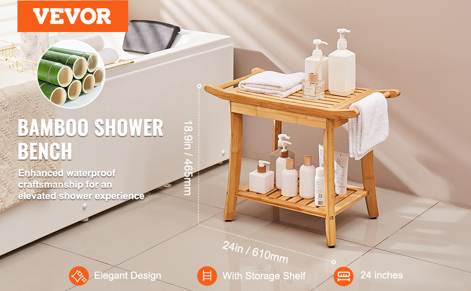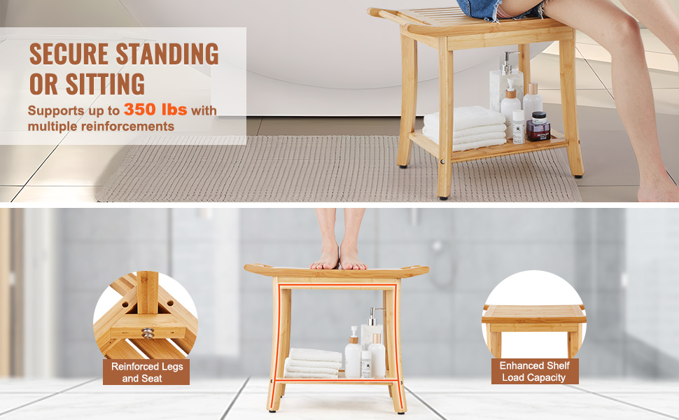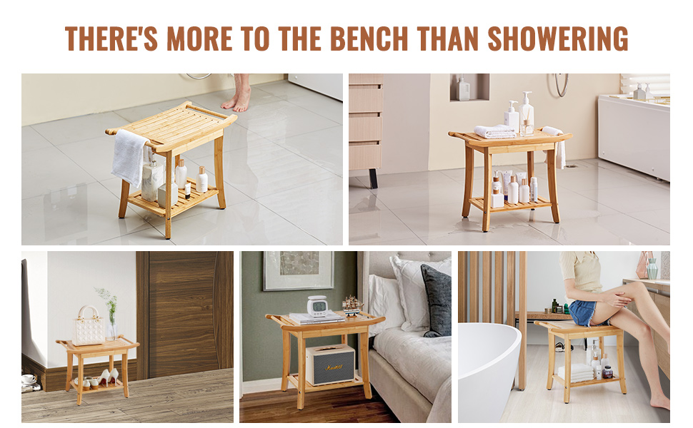 Hľadáte organizér do kúpeľne alebo spoľahlivé sedadlo do sprchy? Nehľadajte nič iné ako našu vodotesnú bambusovú lavicu do sprchy. Je odolná vďaka dvojvrstvovej konštrukcii a unesie až 300 kg. Vďaka rukoväti ju možno použiť ako príručný stolík alebo stojan na topánky a hodí sa do kúpeľne, obývačky aj spálne.