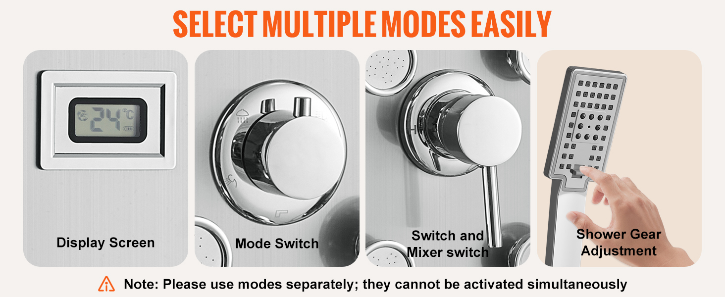 Ľahko si vyberte požadovaný režim sprchovania a teplotu vody pomocou ovládacieho gombíka; náš sprchový systém je navrhnutý na sprchovanie na mieru. Na udržanie stabilného tlaku a teploty vody by sa mal každý režim ovládať samostatne.