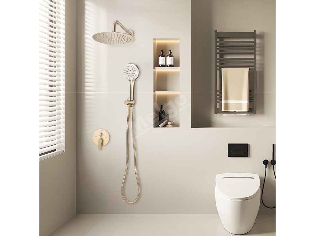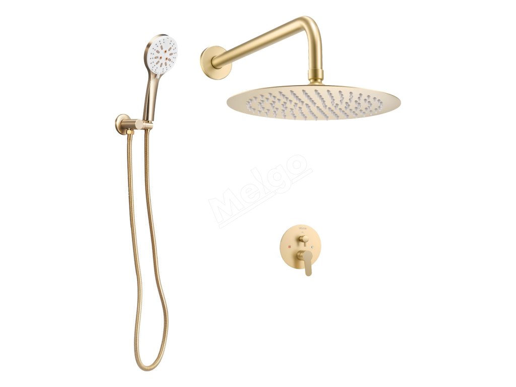 Sprchový set 25,4 cm hlavová a ručná sprcha, mosadz, brúsené zlato