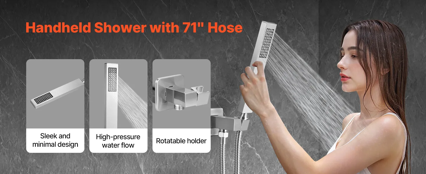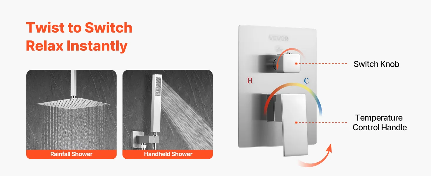 Naša súprava sprchového systému s dvoma funkciami ponúka možnosť dažďovej aj ručnej sprchy a poskytuje vysokotlakový prúd vody aj pri nízkom stave vody, čím poskytuje osviežujúci a relaxačný zážitok zo sprchovania.