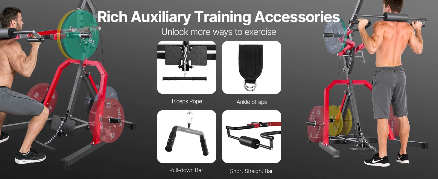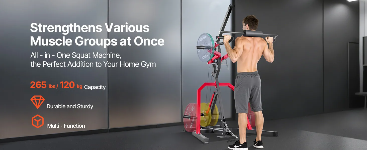 Trénujte s istotou bez tlaku na kolená a chrbát! Tento multifunkčný stroj je určený pre fitness nadšencov s jasnými cieľmi a poskytuje tréning celého tela. Funguje ako váš osobný tréner drepov, rehabilitačný partner a vylepšený nástroj pre vašu domácu posilňovňu.