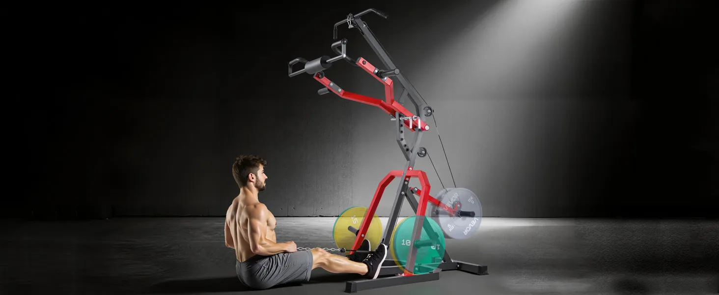 Domáci posilňovací stroj s pákovým systémom 2:1, nastaviteľný
