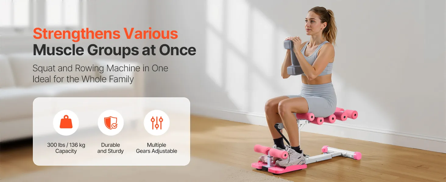 Stroj na hlboké drepy a tréner na sedacie svaly, 3 nastaviteľné pásy