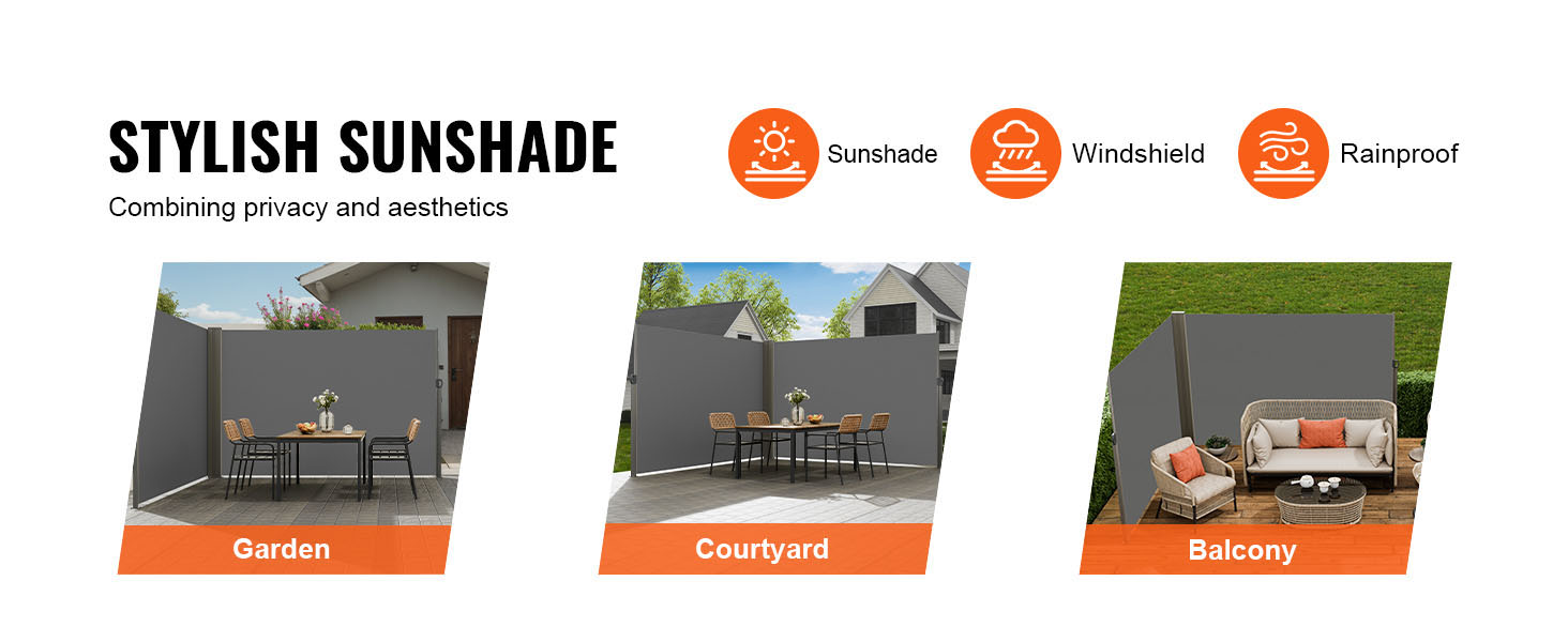 Už žiadne zložité kroky pri inštalácii! Naša zaťahovacia zástena je navrhnutá s ohľadom na pohodlie používateľa. Vďaka kompletnej súprave inštalačného príslušenstva a jasným pokynom je montáž jednoduchá a nevyžaduje si žiadne odborné zručnosti. Rýchlo si vytvorte pohodlný vonkajší priestor!