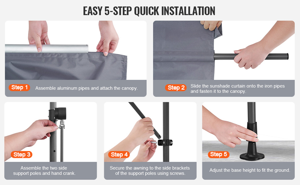 Táto výsuvná markíza na terasu bez potreby vŕtania využíva spony a skrutky na bezpečnú inštaláciu, vďaka čomu je jej montáž jednoduchá aj pre dve osoby.