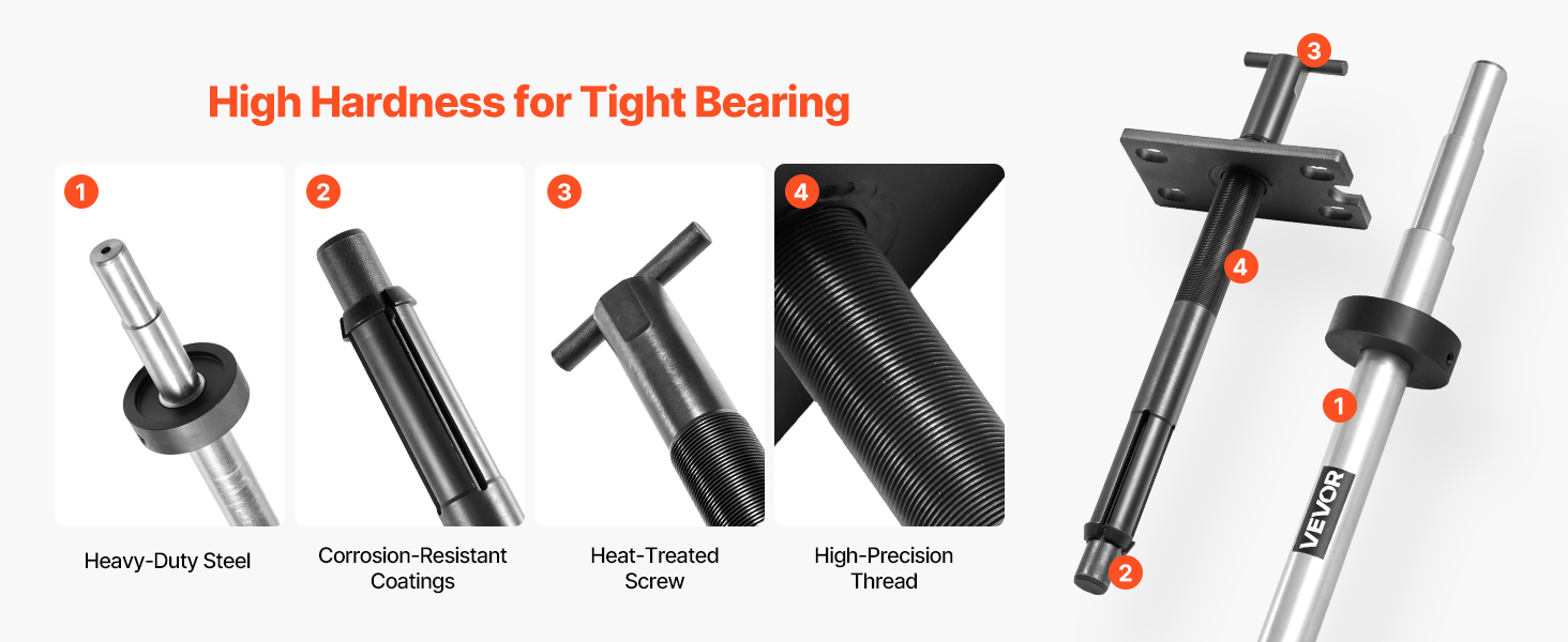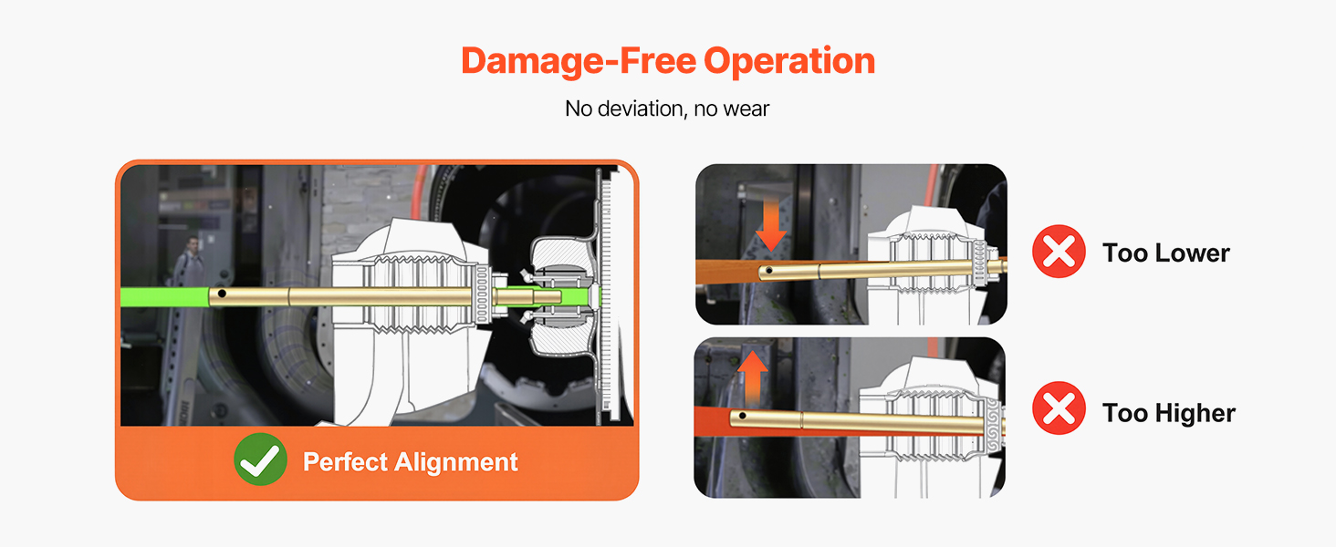 Montážny nástroj na vyťahovanie kardanových ložísk je vybavený pevným koncovým krúžkom, ktorý sa vyrovná s polohou starého ložiska. Tepelne spracovaná skrutka zabezpečuje pevné upevnenie, znižuje vibrácie a zlepšuje silu úderu kladiva počas inštalácie.