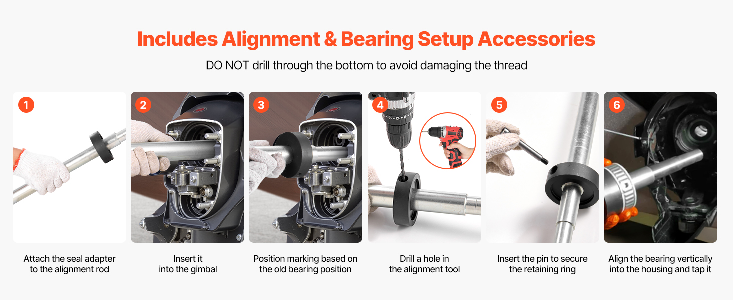Táto súprava "všetko v jednom" obsahuje sťahovák kardanových ložísk, nástroj na inštaláciu ložísk a nástroj na vyrovnávanie - ideálne na rýchlejšiu a jednoduchšiu inštaláciu a demontáž dielov lodného motora.