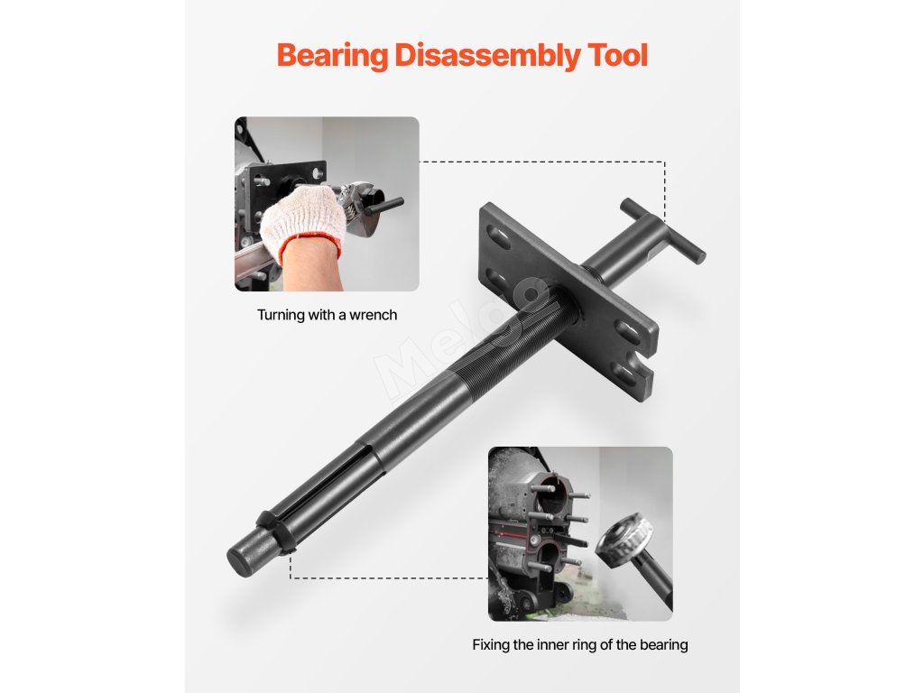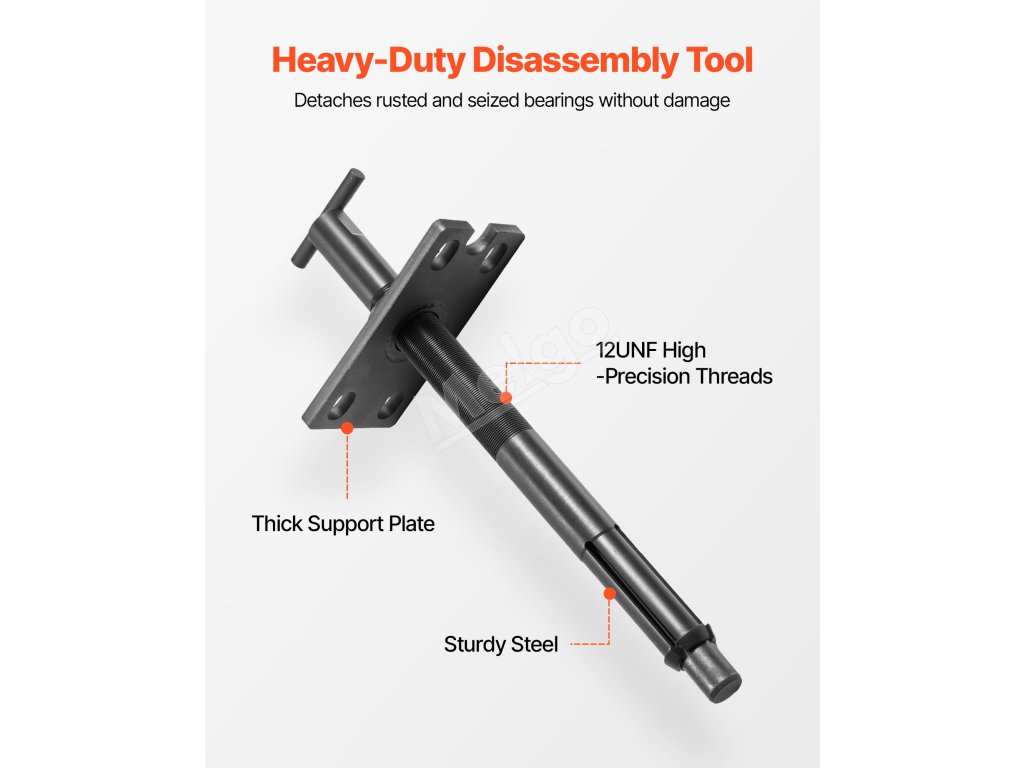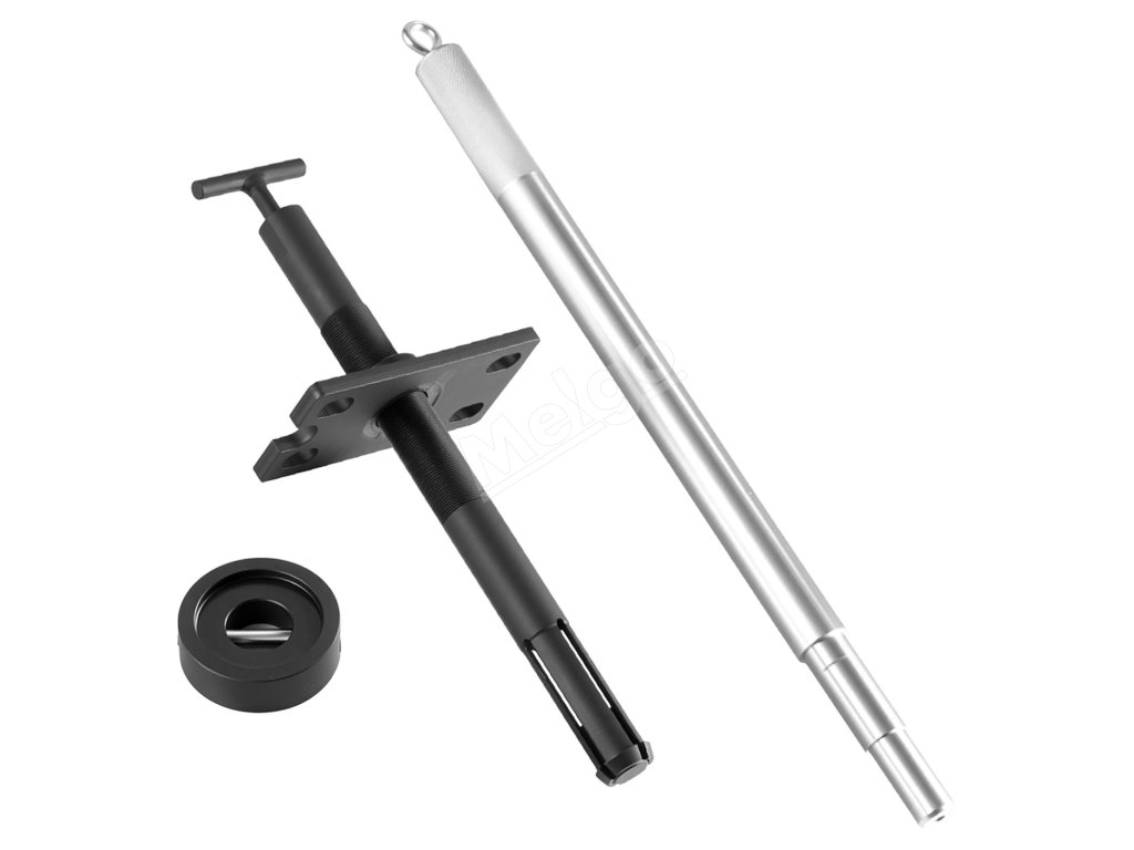 Montážny nástroj na vyťahovanie kardanových ložísk je vybavený pevným koncovým krúžkom, ktorý sa vyrovná s polohou starého ložiska. Tepelne spracovaná skrutka zabezpečuje pevné upevnenie, znižuje vibrácie a zlepšuje silu úderu kladiva počas inštalácie.