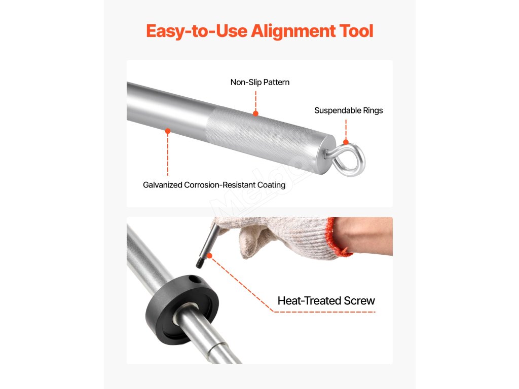 Nástroj na zarovnávanie kolies mercruiser je vyrobený z vysokopevnostnej ocele a poradí si s tesnými dielmi bez poškodenia. Nástroj na zarovnávanie má textúrovanú protišmykovú vrchnú časť na bezpečnejšie zatĺkanie bez pošmyknutia alebo zranenia.