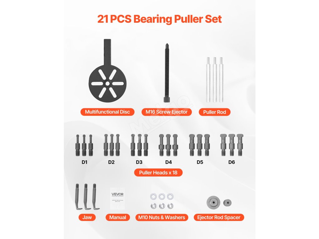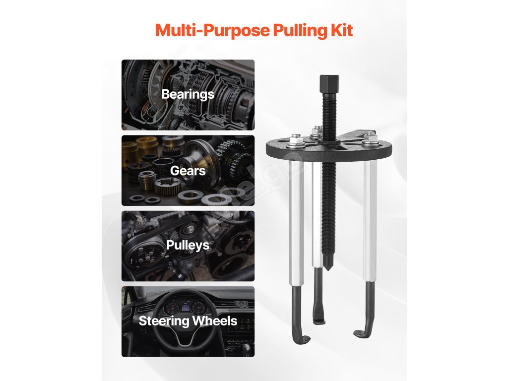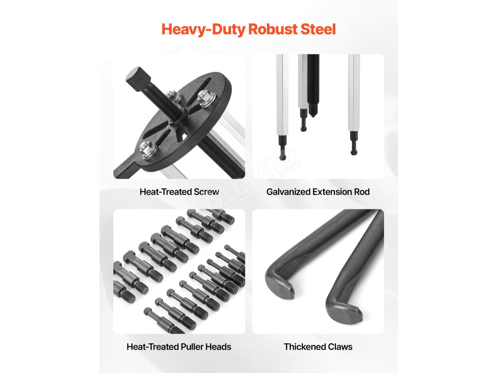 Táto súprava na sťahovanie ložísk je vybavená pomocnými dištančnými podložkami skrutiek, ktoré rozširujú kontaktnú plochu skrutky a pomáhajú vám efektívnejšie sťahovať ložiská.