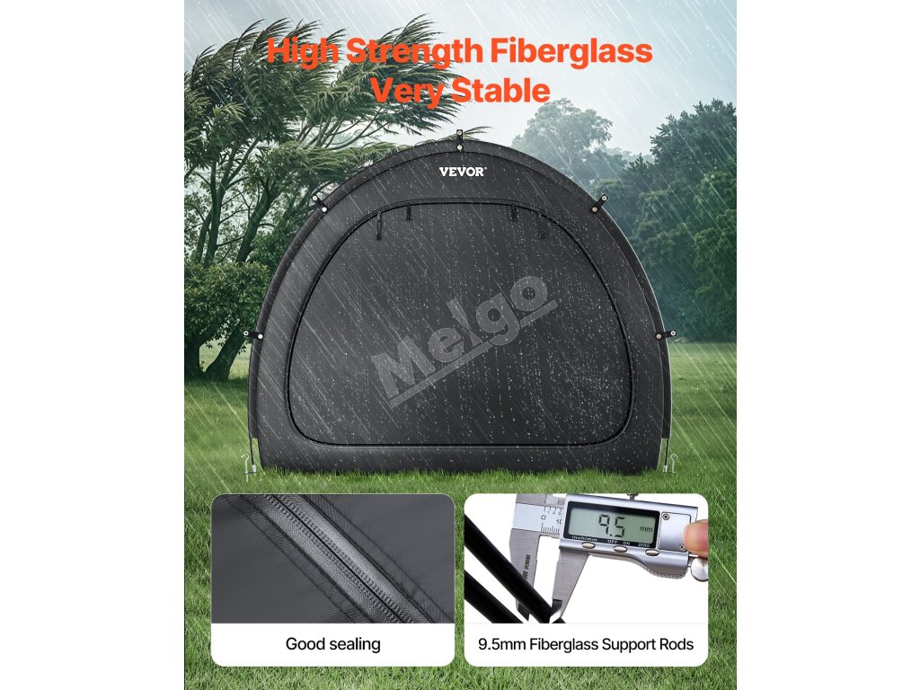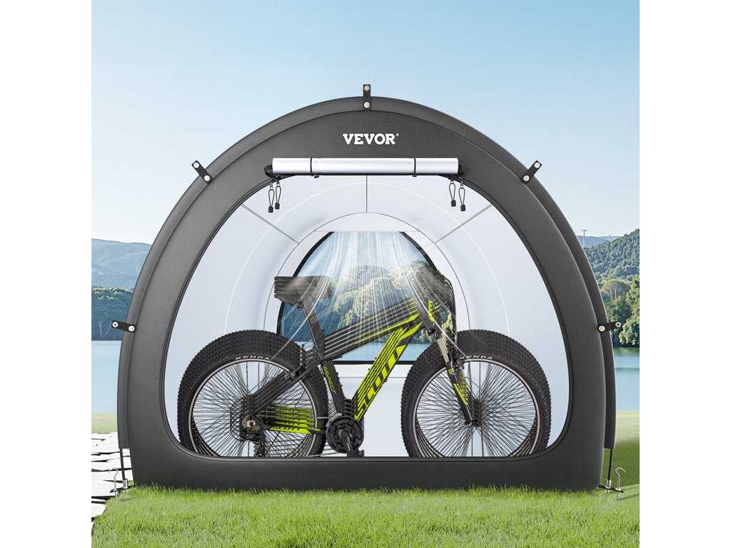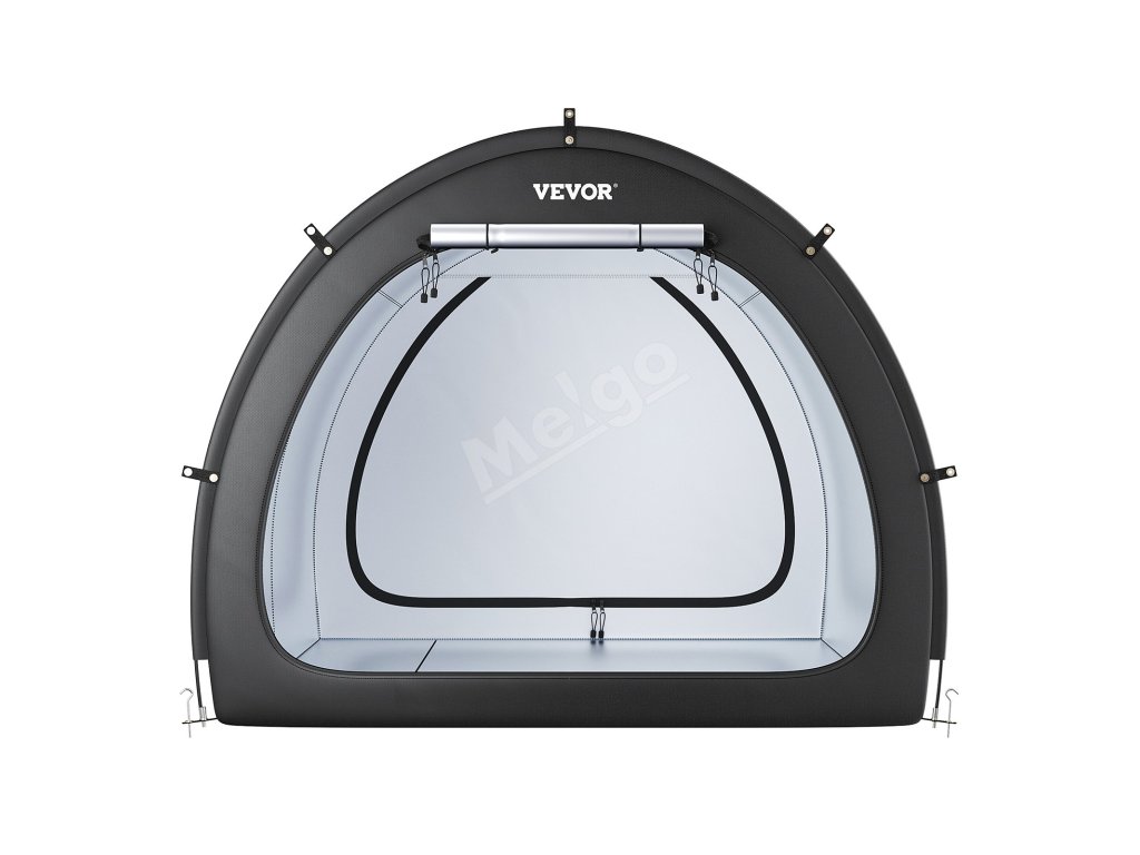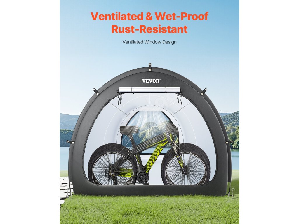 Náš prístrešok na bicykel je vybavený dvojvrstvovou vodotesnou vrstvou a tkaninou Oxford 210D so striebornou vrstvou, ktorá zaručuje odolnosť. Robustný rám zo sklených vlákien zaisťuje stabilitu, zatiaľ čo jeho ľahká konštrukcia umožňuje rýchle nastavenie. Vetracie okná udržiavajú interiér v suchu a sviežosti.