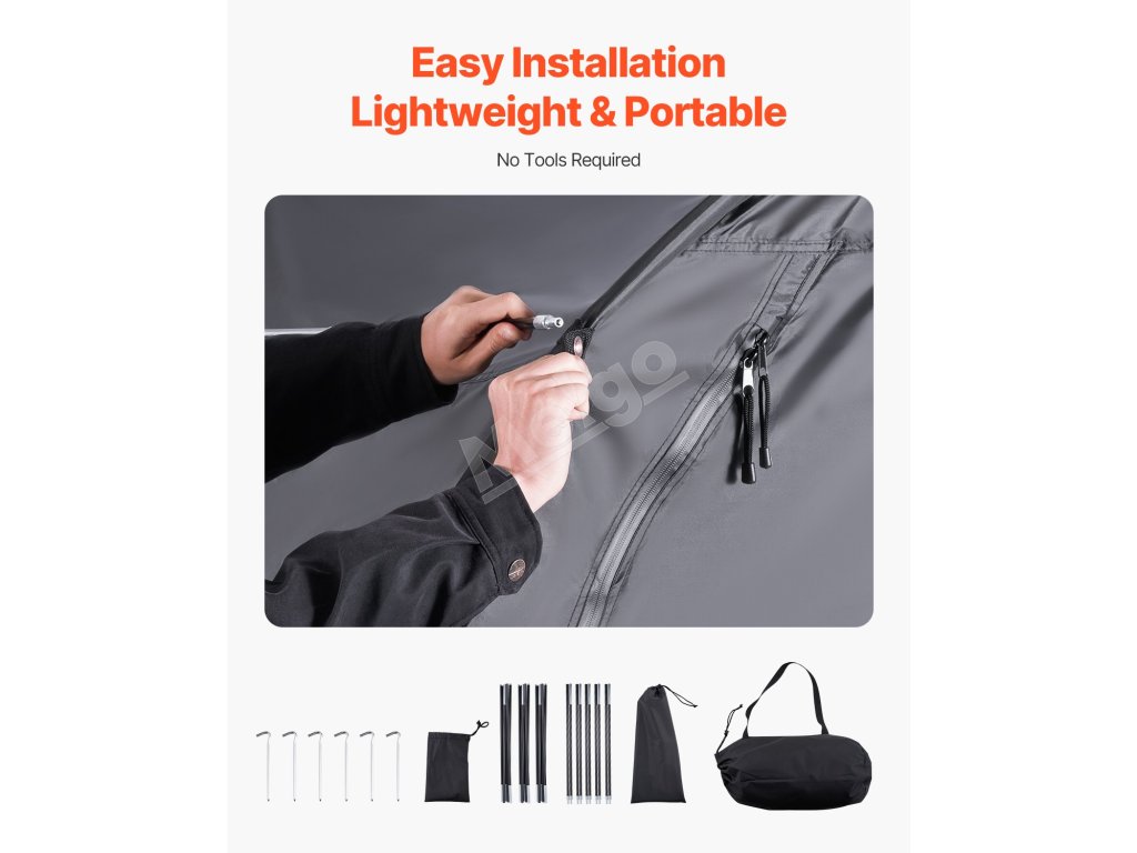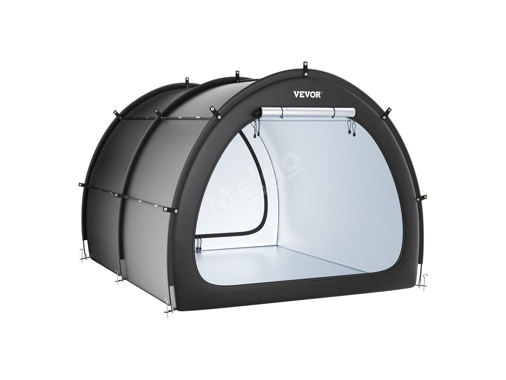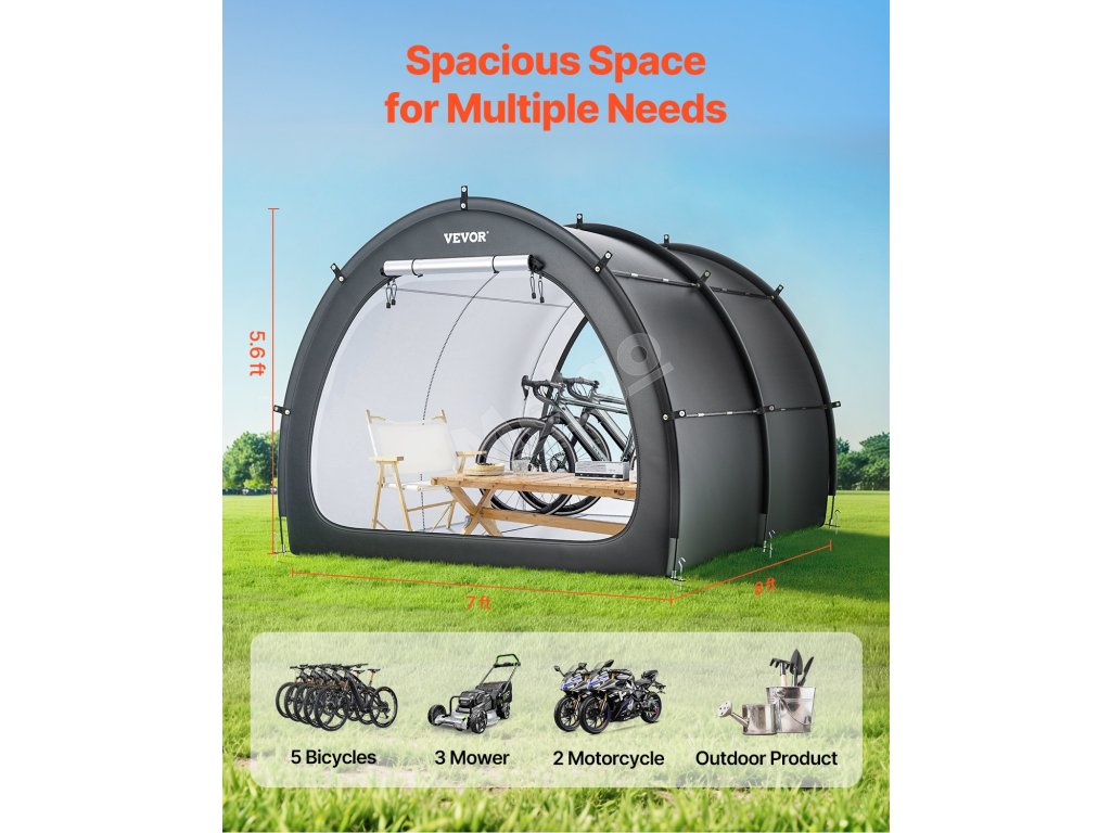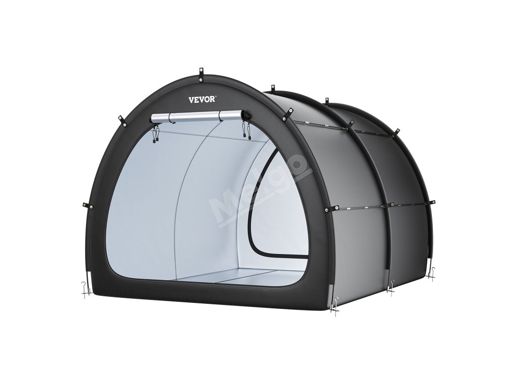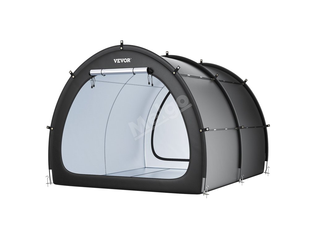 Náš prístrešok na bicykel je vybavený dvojvrstvovou vodotesnou vrstvou a tkaninou Oxford 210D so striebornou vrstvou, ktorá zaručuje odolnosť. Robustný rám zo sklených vlákien zaisťuje stabilitu, zatiaľ čo jeho ľahká konštrukcia umožňuje rýchle nastavenie. Vetracie okná udržiavajú interiér v suchu a sviežosti.