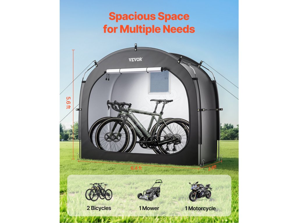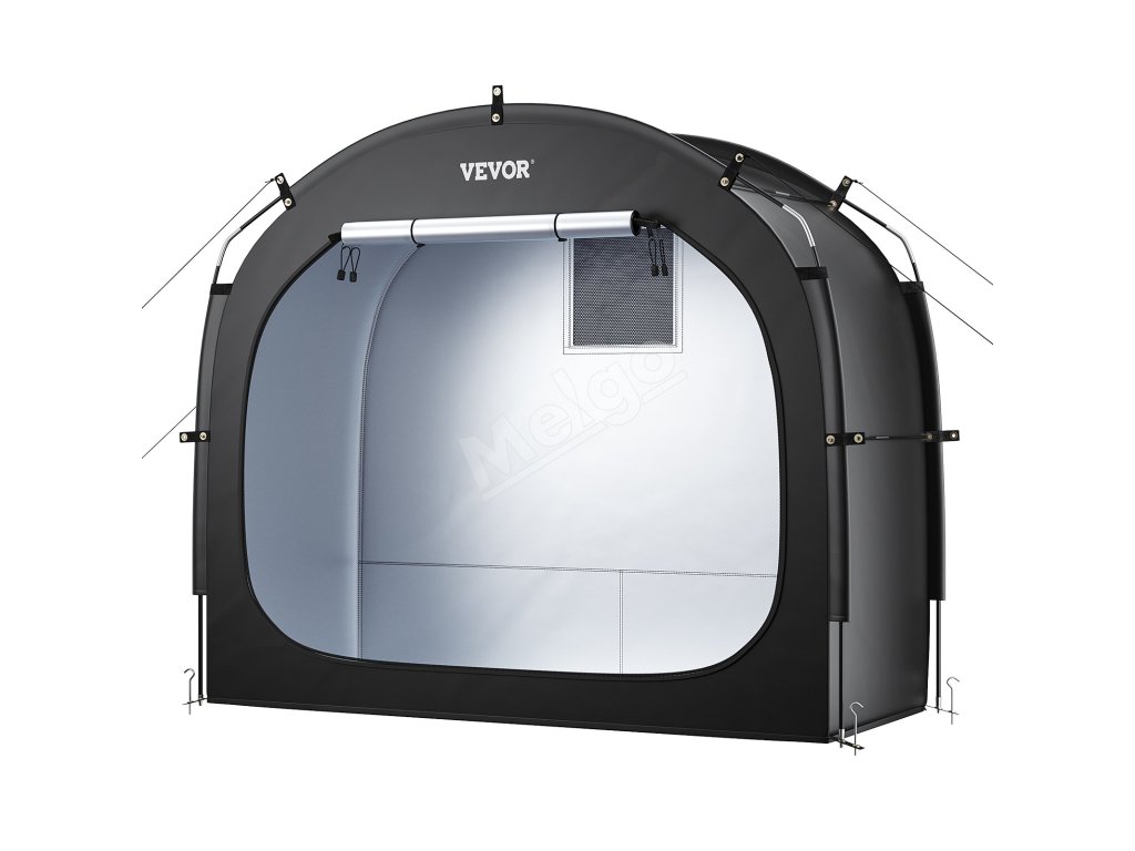 Náš prístrešok na bicykel je vybavený dvojvrstvovou vodotesnou vrstvou a tkaninou Oxford 210D so striebornou vrstvou, ktorá zaručuje odolnosť. Robustný rám zo sklených vlákien zaisťuje stabilitu, zatiaľ čo jeho ľahká konštrukcia umožňuje rýchle nastavenie. Vetracie okná udržiavajú interiér v suchu a sviežosti.