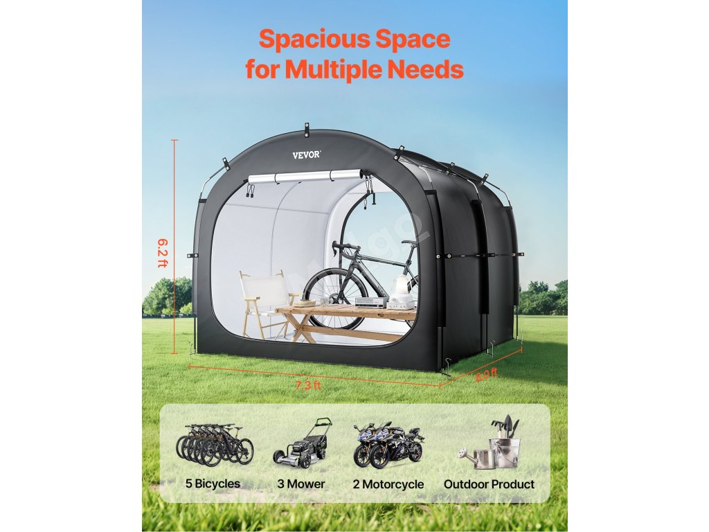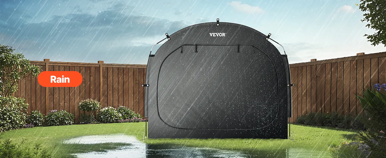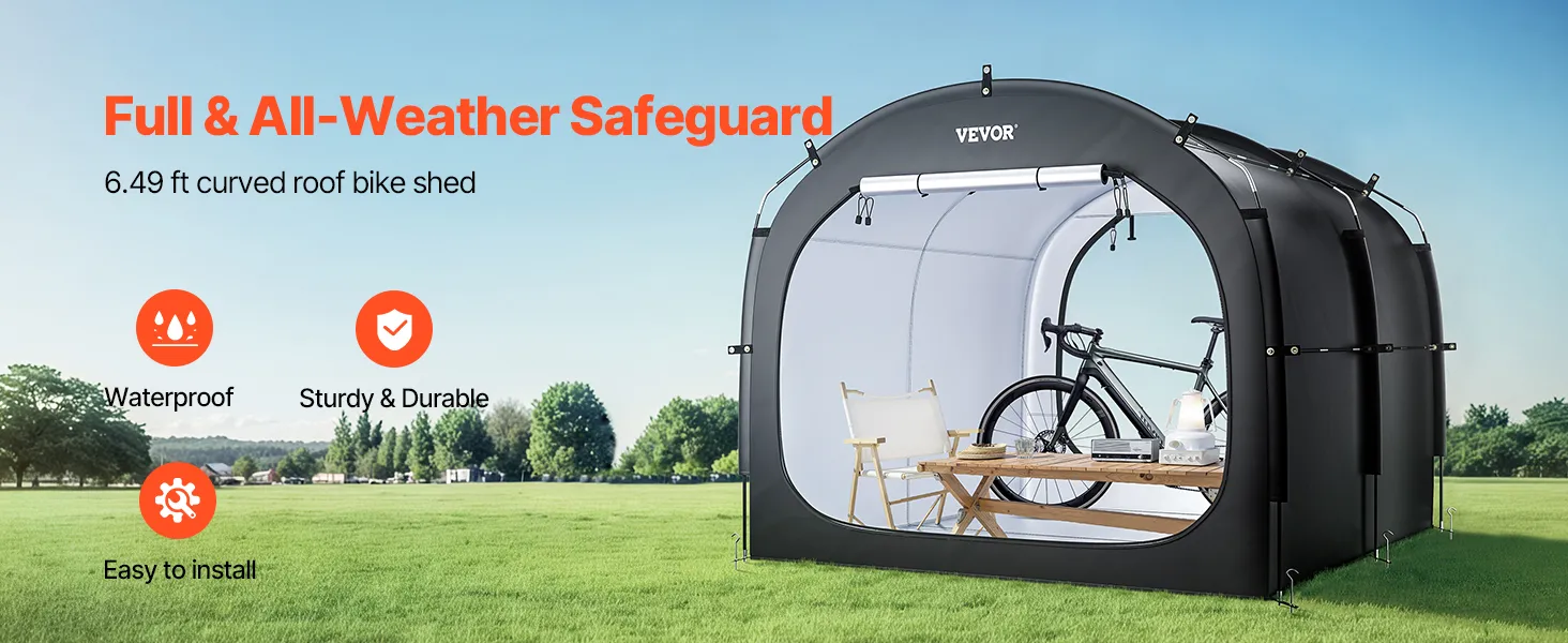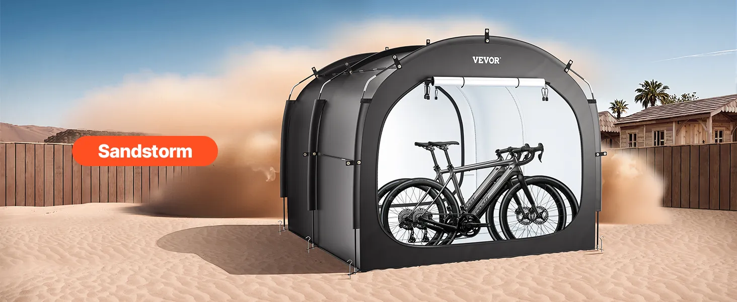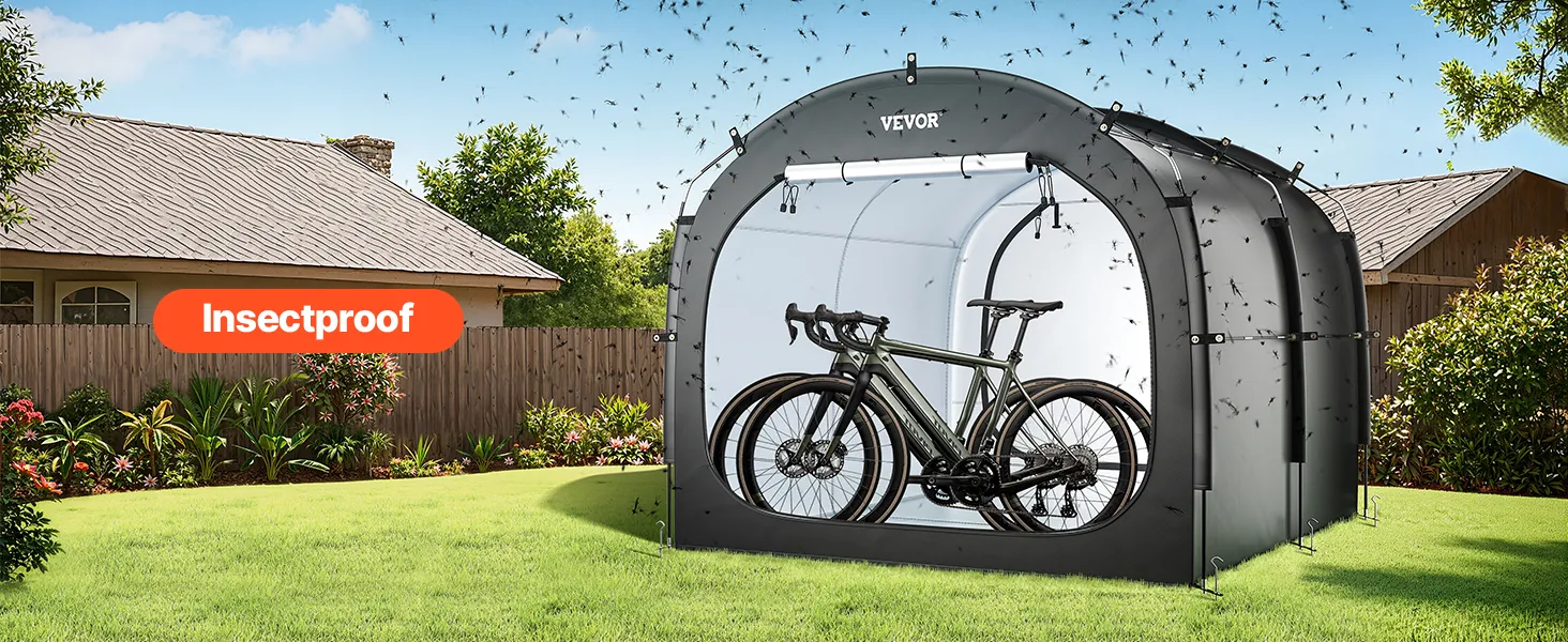 Náš prístrešok na bicykel je vybavený dvojvrstvovou vodotesnou vrstvou a tkaninou Oxford 210D so striebornou vrstvou, ktorá zaručuje odolnosť. Robustný rám zo sklených vlákien zaisťuje stabilitu, zatiaľ čo jeho ľahká konštrukcia umožňuje rýchle nastavenie. Vetracie okná udržiavajú interiér v suchu a sviežosti.
