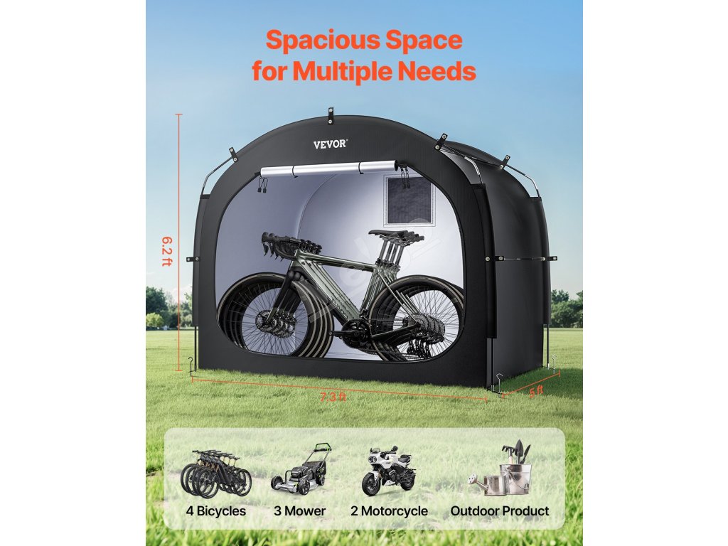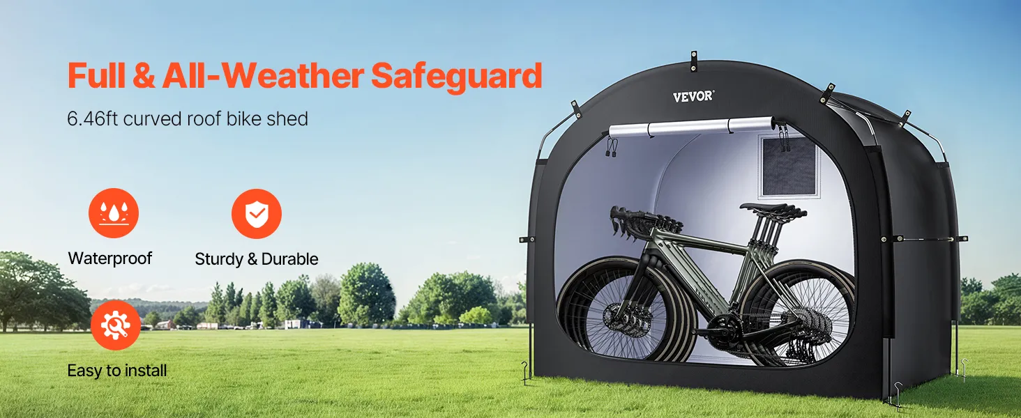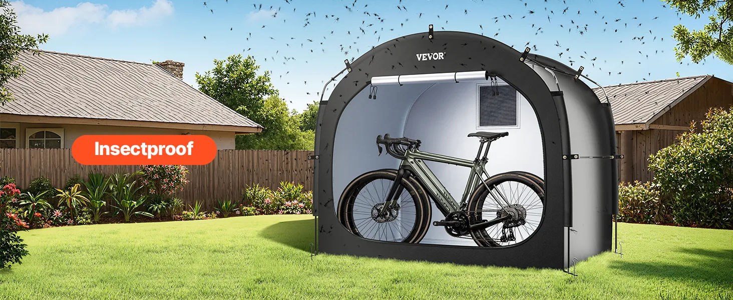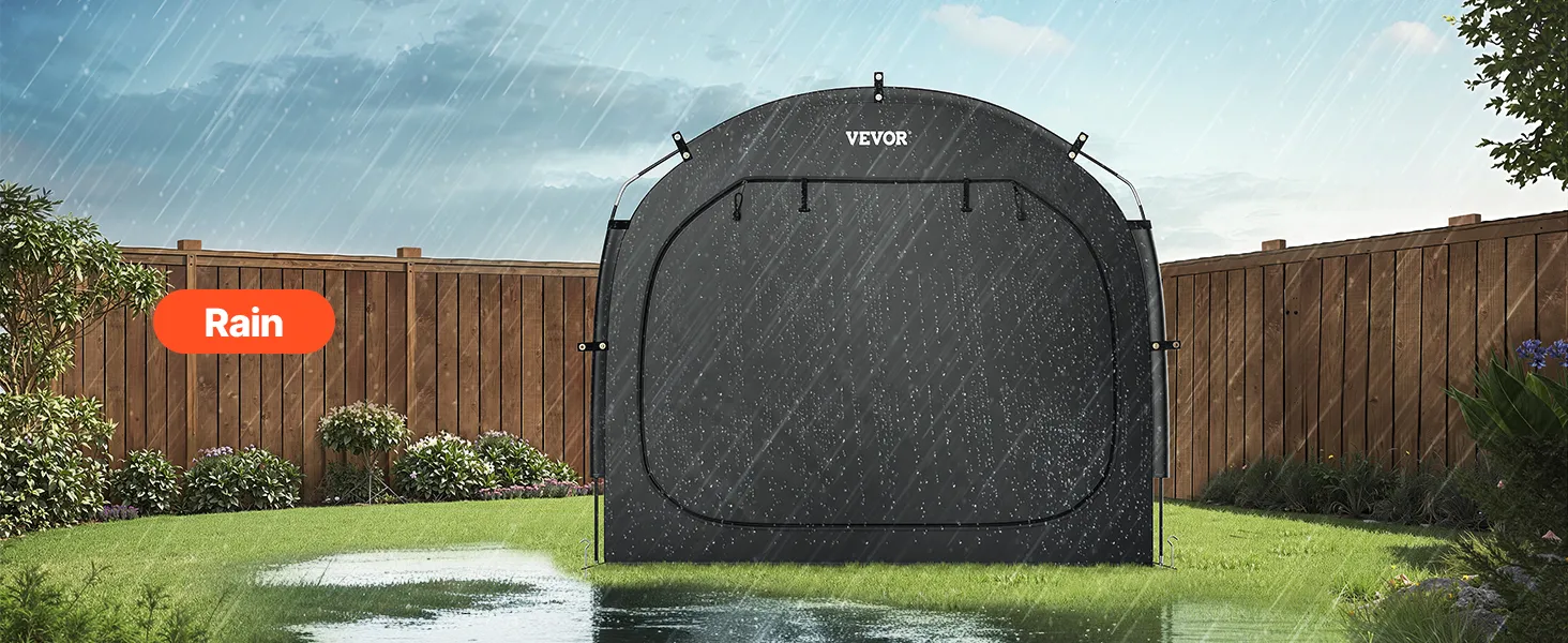 Náš prístrešok na bicykel je vybavený dvojvrstvovou vodotesnou vrstvou a tkaninou Oxford 210D so striebornou vrstvou, ktorá zaručuje odolnosť. Robustný rám zo sklených vlákien zaisťuje stabilitu, zatiaľ čo jeho ľahká konštrukcia umožňuje rýchle nastavenie. Vetracie okná udržiavajú interiér v suchu a sviežosti.