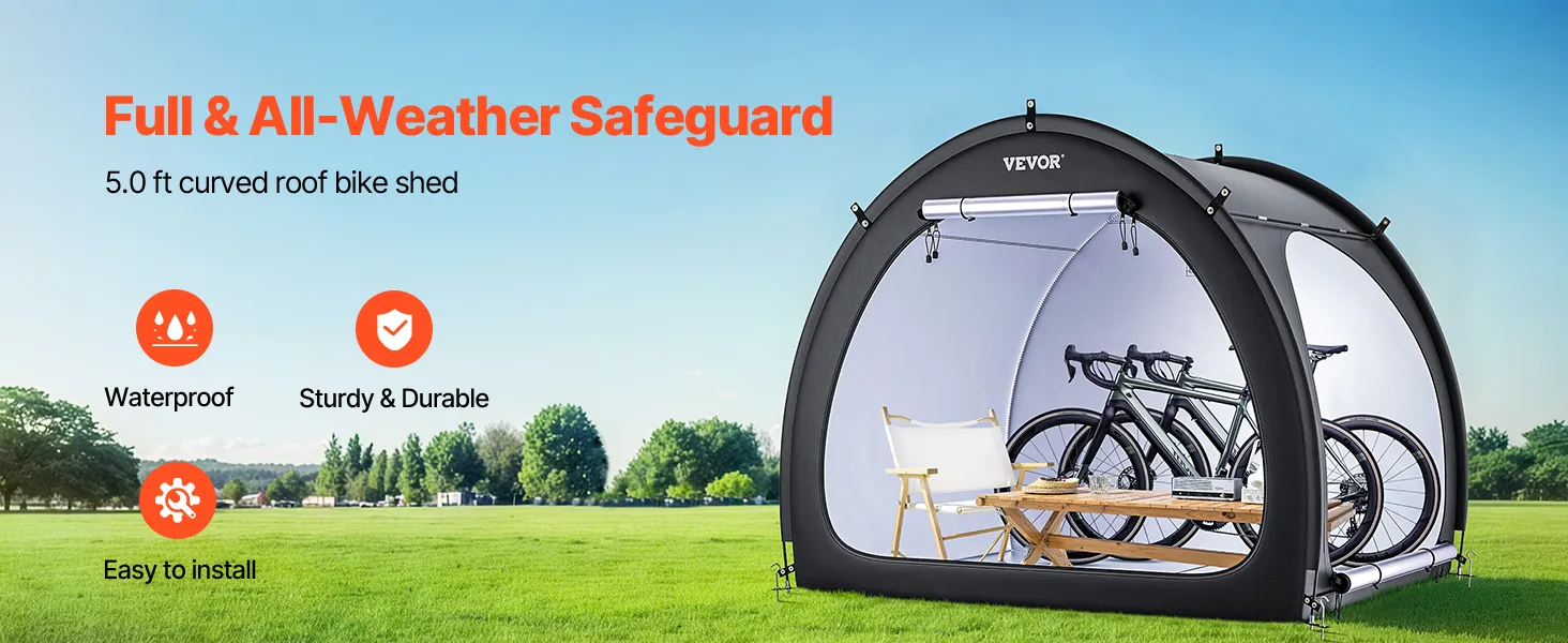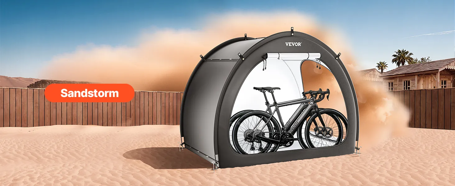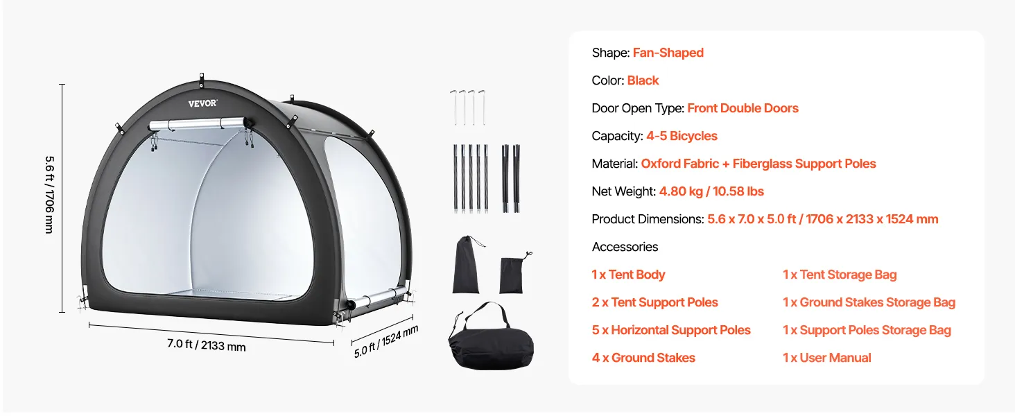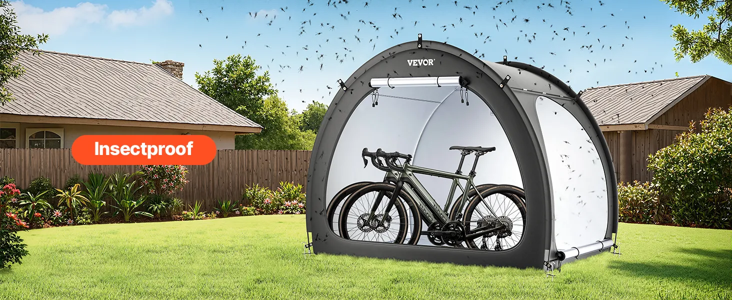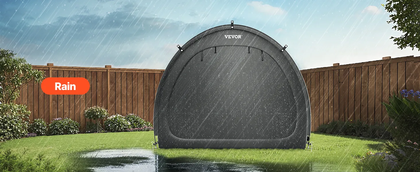 Náš prístrešok na bicykel je vybavený dvojvrstvovou vodotesnou vrstvou a tkaninou Oxford 210D so striebornou povrchovou úpravou, ktorá zaručuje odolnosť. Robustný rám zo sklených vlákien zaisťuje stabilitu, zatiaľ čo jeho ľahká konštrukcia umožňuje rýchle nastavenie. Vetracie okná udržiavajú interiér v suchu a sviežosti.