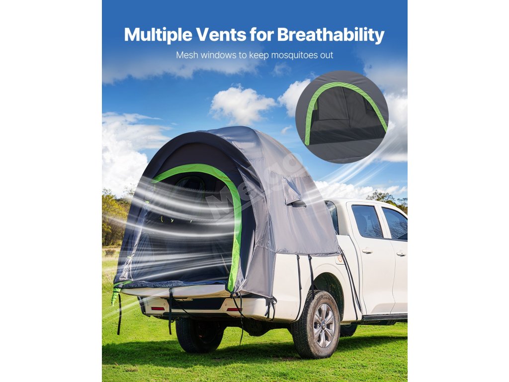 Náš stan na kempovanie na lôžku nákladného auta je vybavený sieťovanými oknami, ktoré podporujú vynikajúce prúdenie vzduchu, udržiavajú čerstvý a chladný vzduch a zároveň chránia pred vniknutím komárov dovnútra.