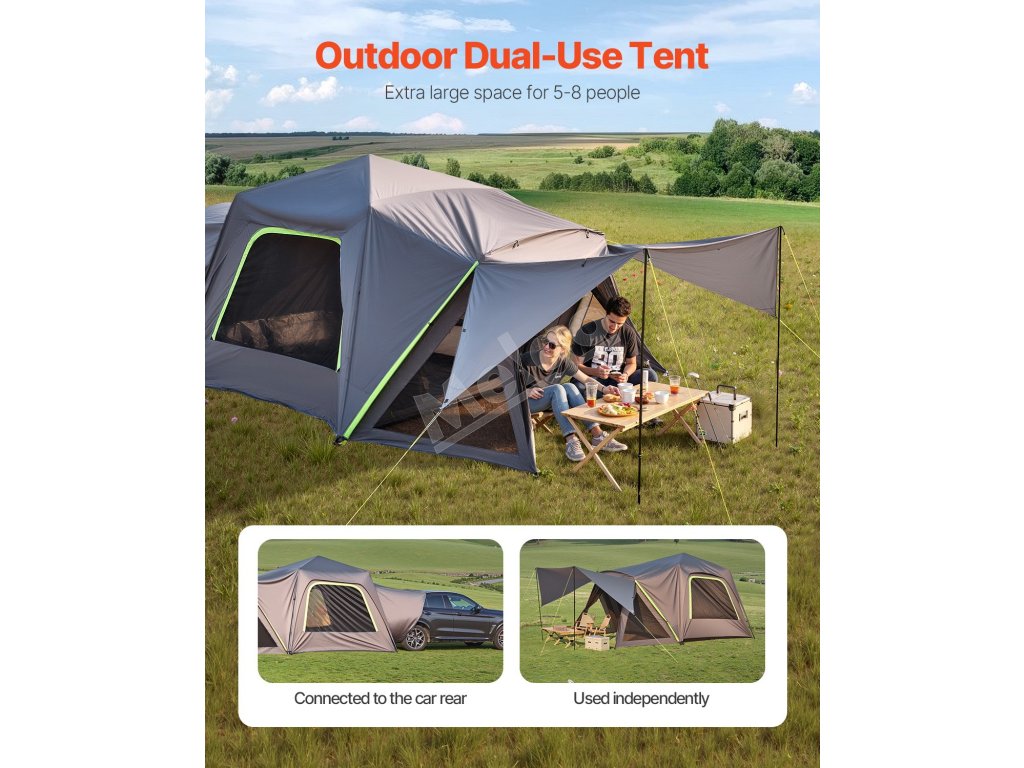 Vďaka dostatočnému priestoru umožňuje tento stan pre SUV skupinové stretnutia bez pocitu stiesnenosti. Jeho vysoká výška znamená, že sa nemusíte ohýbať ani hrbiť, čo vašej rodine zabezpečí pohodlné kempovanie v prírode.