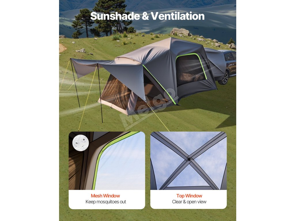 Náš stan SUV na kempovanie je vybavený sieťovanými oknami, ktoré podporujú vynikajúce prúdenie vzduchu, udržiavajú čerstvý a chladný vzduch a zároveň chránia pred vniknutím komárov dovnútra.