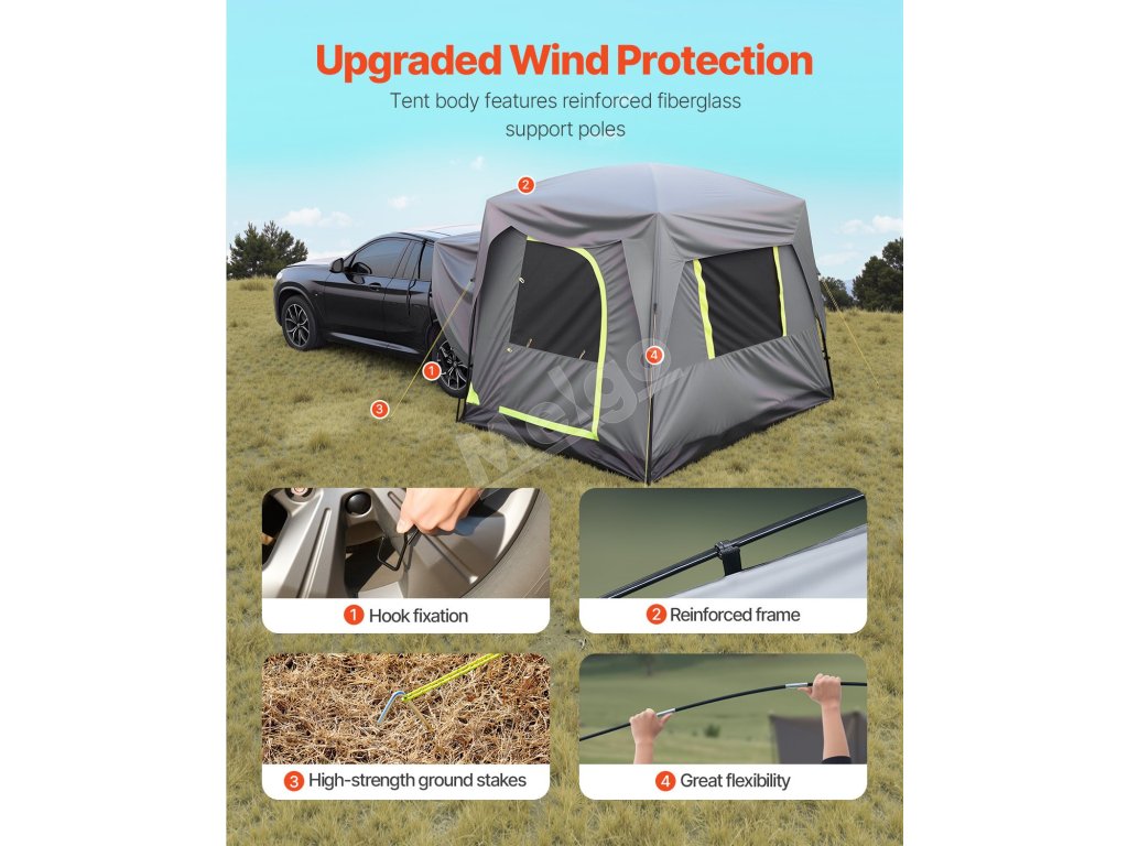 Tento stan do auta pre vozidlá SUV, vyrobený z tkaniny Oxford 210T a s pevnými švami, poskytuje tepelnú izoláciu aj vodotesnosť s označením PU2000. Účinne zabraňuje prenikaniu dažďa, vďaka čomu zostanete vo vnútri v suchu.