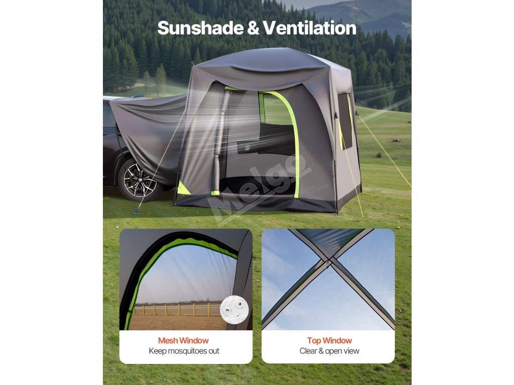 Náš stan SUV na kempovanie je vybavený sieťovanými oknami, ktoré podporujú vynikajúce prúdenie vzduchu, udržiavajú čerstvý a chladný vzduch a zároveň chránia pred vniknutím komárov dovnútra.