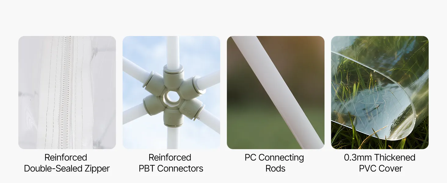 A3: Vylepšili sme rýchlospojku PBT, ktorá sa ľahko inštaluje a odstraňuje a nie je ľahké ju poškodiť. Odstránili sme aj šesťhrannú konštrukciu rámu, aby sme zjednodušili proces montáže. Odporúčame, aby ho inštalovali dvaja ľudia spoločne, aby bolo jednoduchšie rozložiť a upevniť guľový kryt a užiť si spoločné praktické skúsenosti.