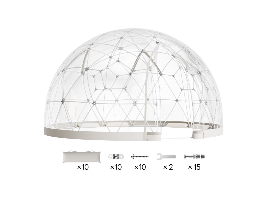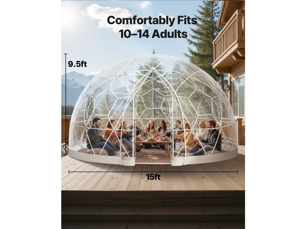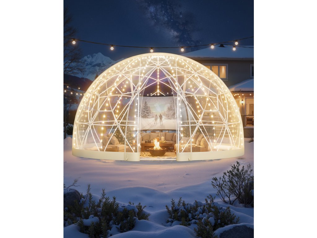 Bublinový iglu stan 4.5×2.7 m, priehľadný, pre 4-7 osôb, s oknom