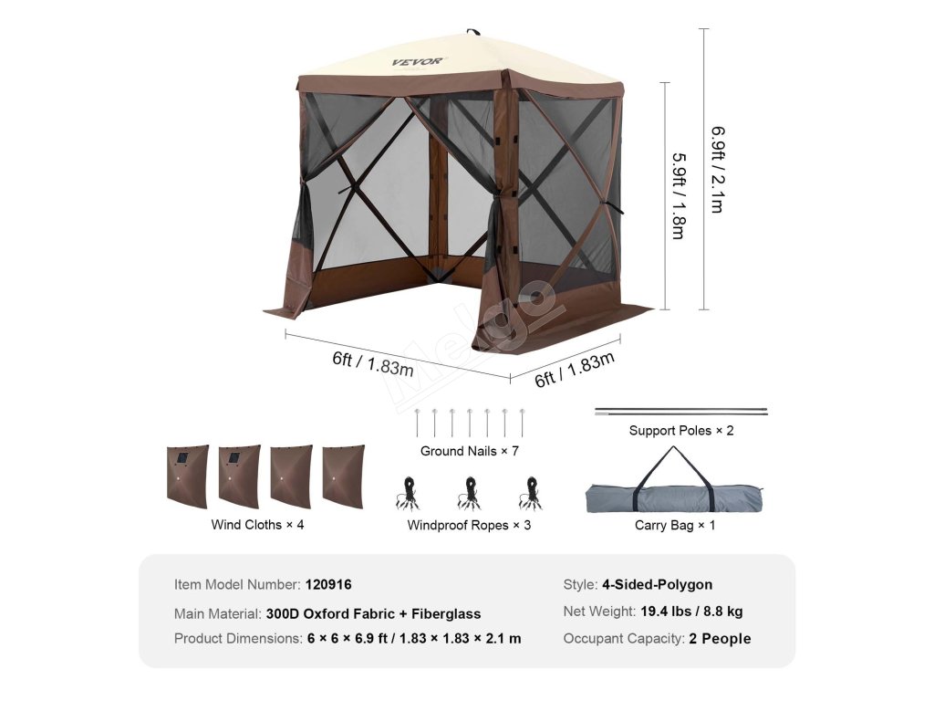 VEVOR 6x6FT Camping Gazebo Screen Tent-A Resting Space for Outdoor Activities!
