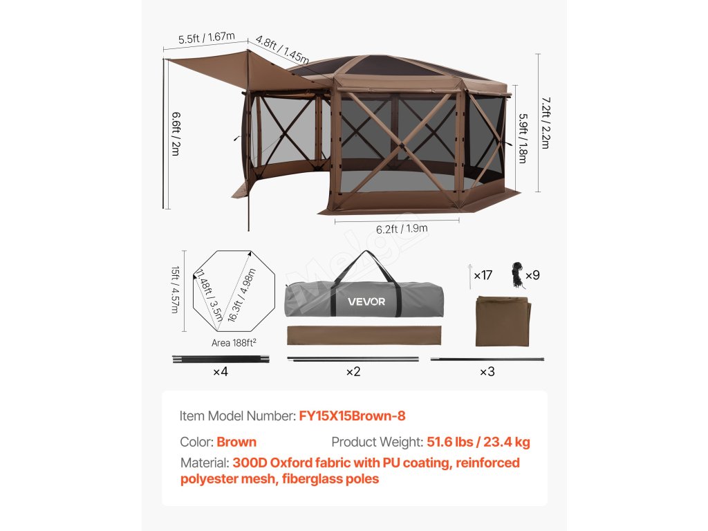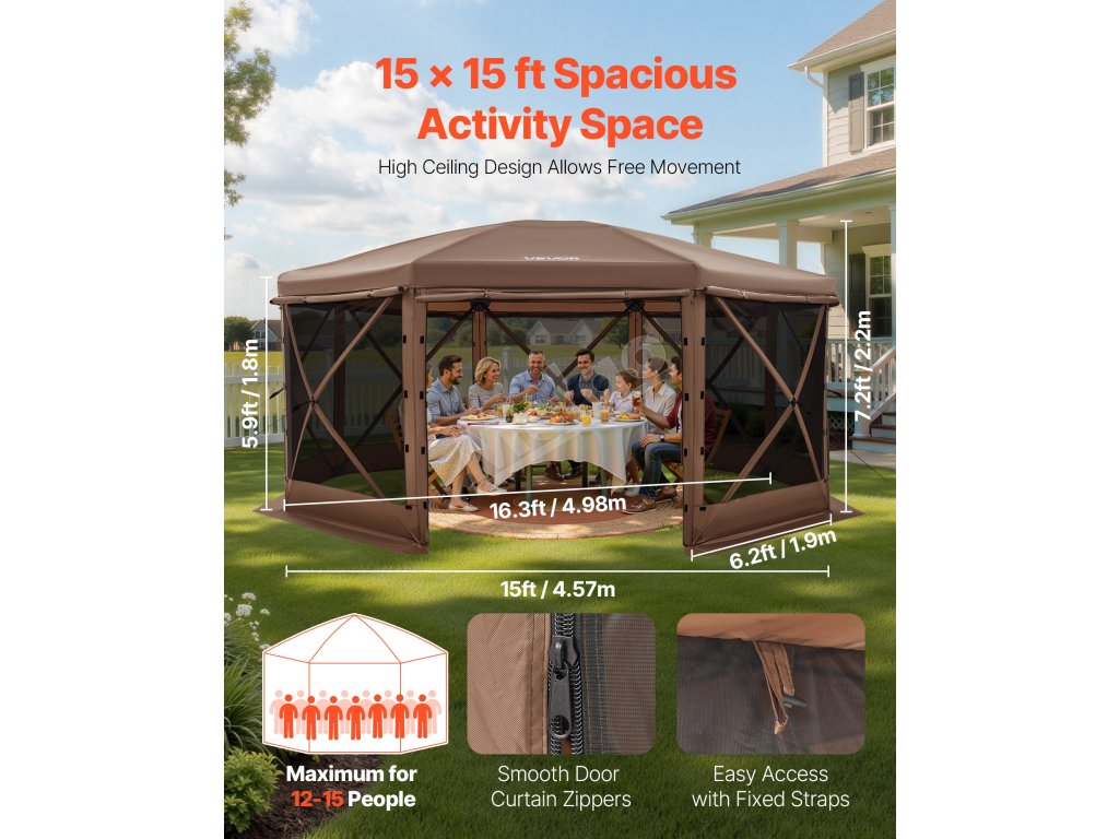 | Rozmery výrobku | 15 × 15 × 7,2 ft / 4,57 × 4,57 × 2,2 m |