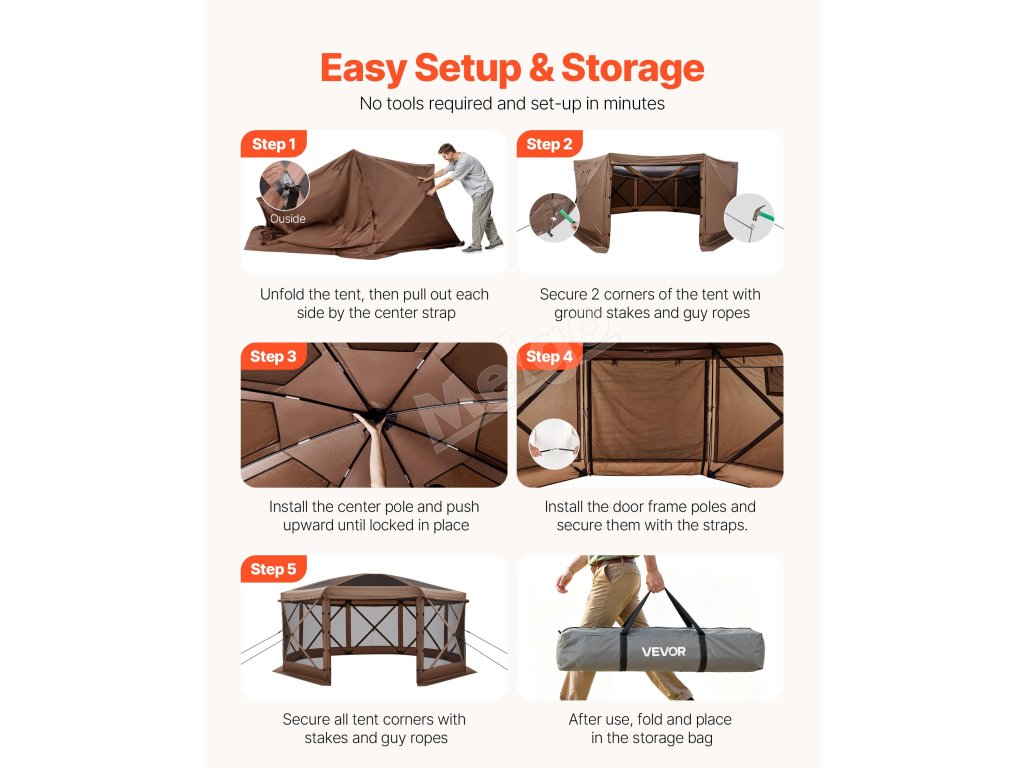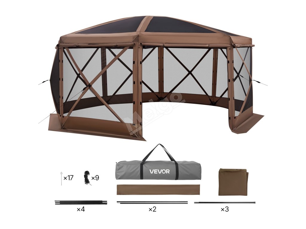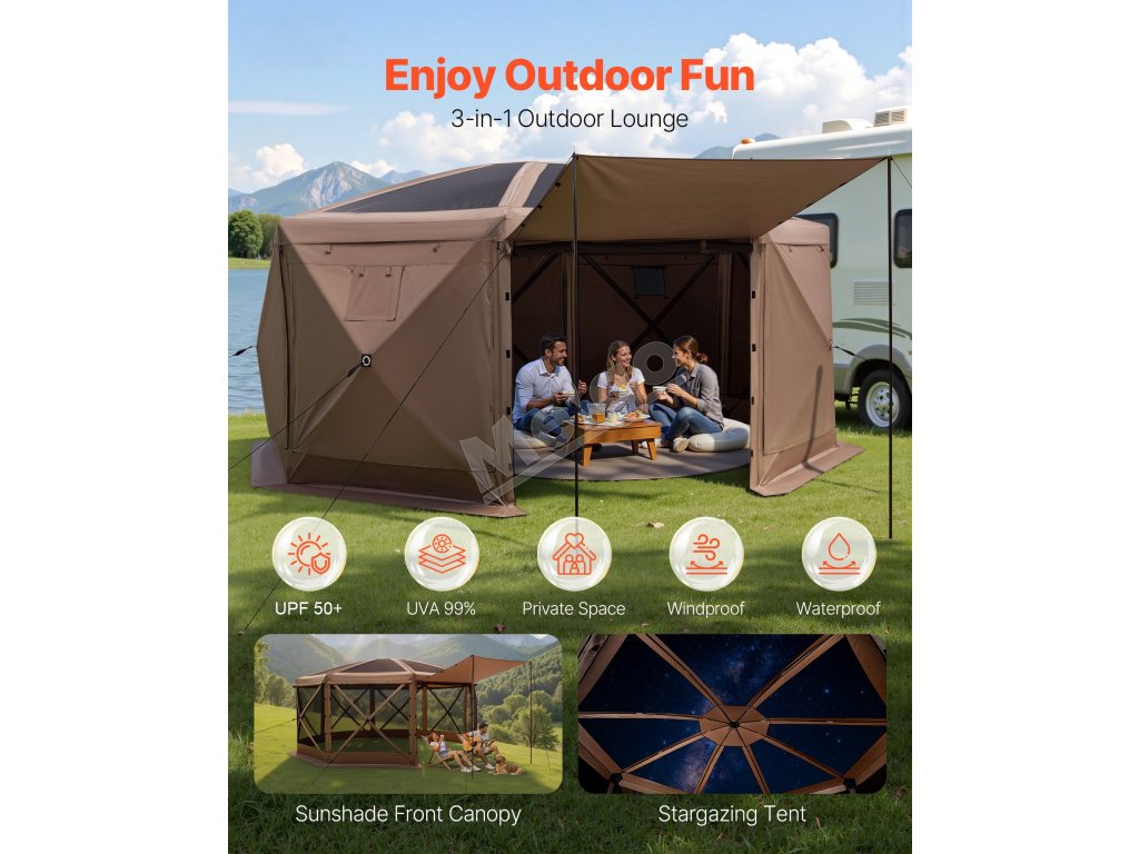 Rozkladací stan s moskytiérou 3.6×3.6 m, 8-stranný, pre 12–15 osôb