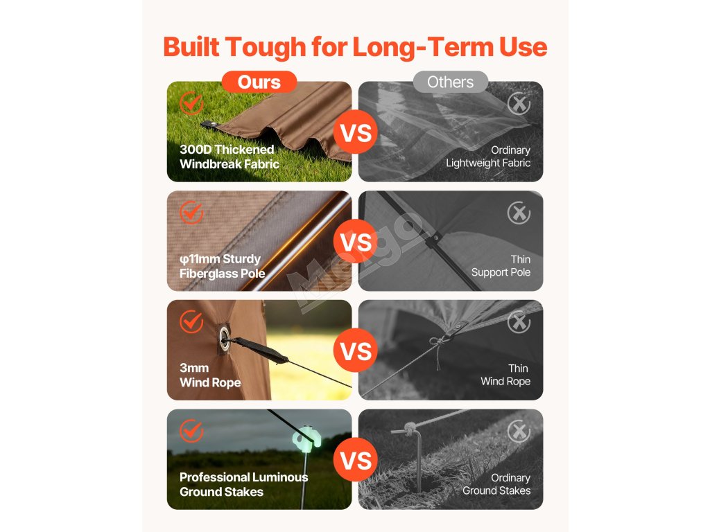 | Materiál | 70G sieťovina + zosilnená 300D oxfordská tkanina s PU povlakom + strieborná strieška + nosné tyče zo sklenených vlákien |