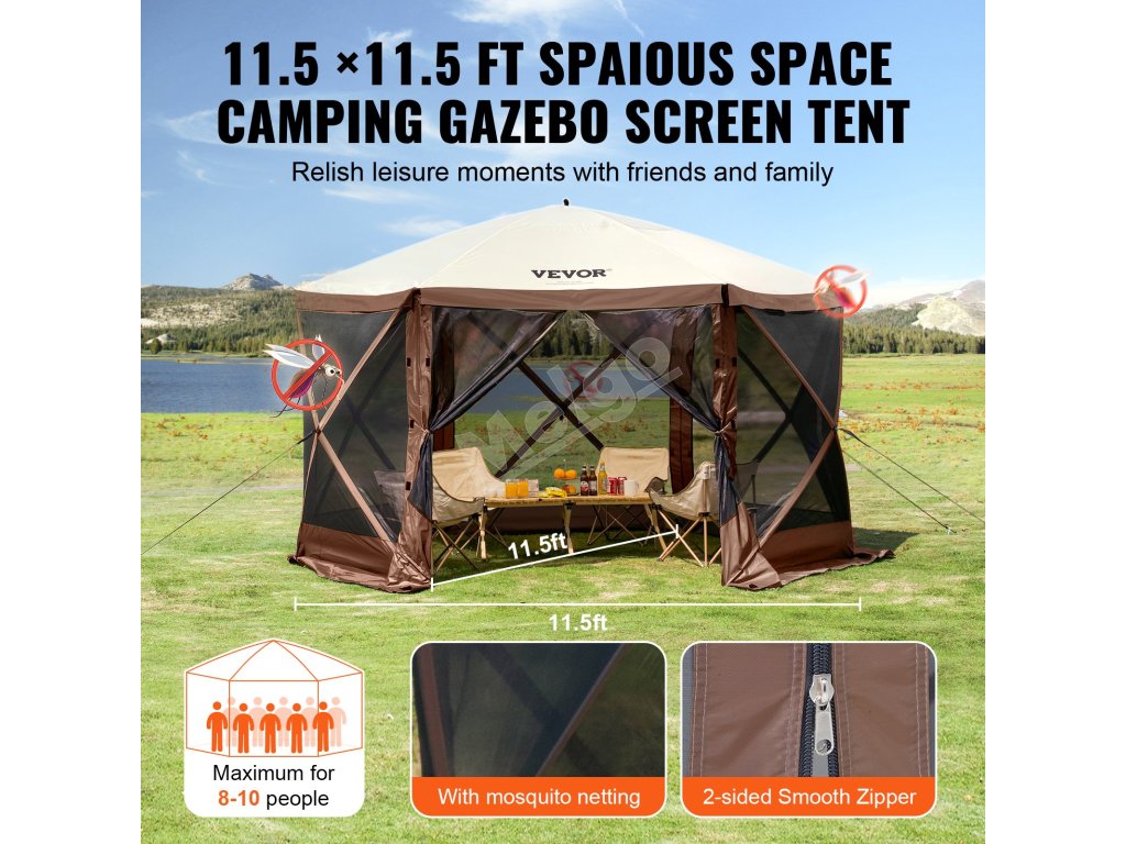 VEVOR 11,5x11,5FT Camping Gazebo Screen Tent-A Rest Space for Outdoor Activity!