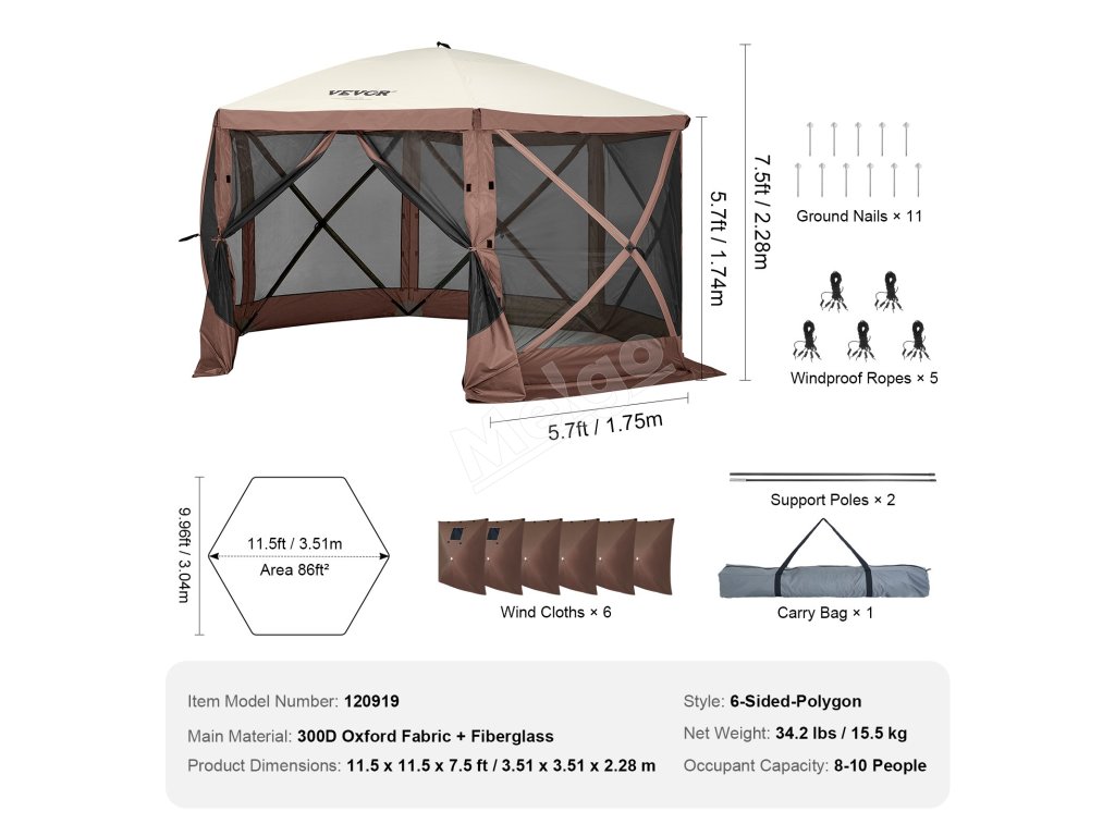 | Rozmery výrobku | 11.5 x 11,5 x 7,5 ft/3,51 x 3,51 x 2,28 m |