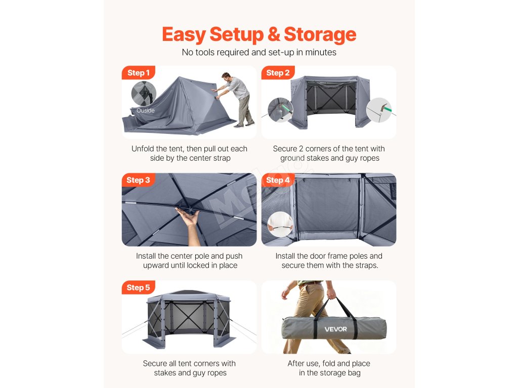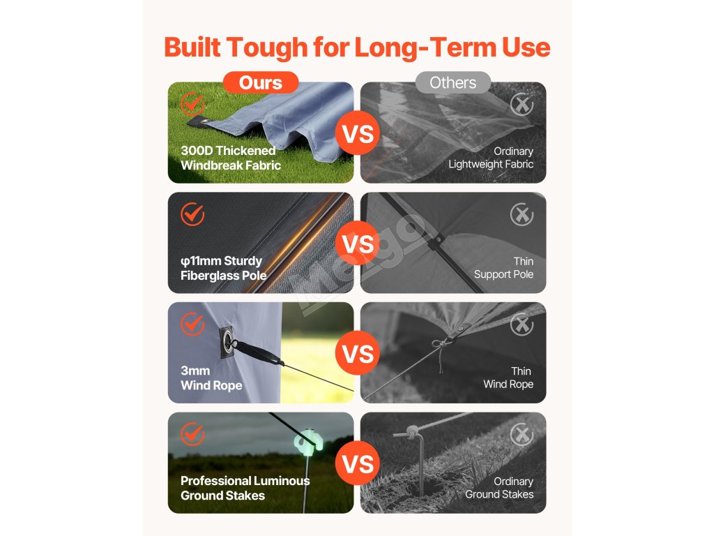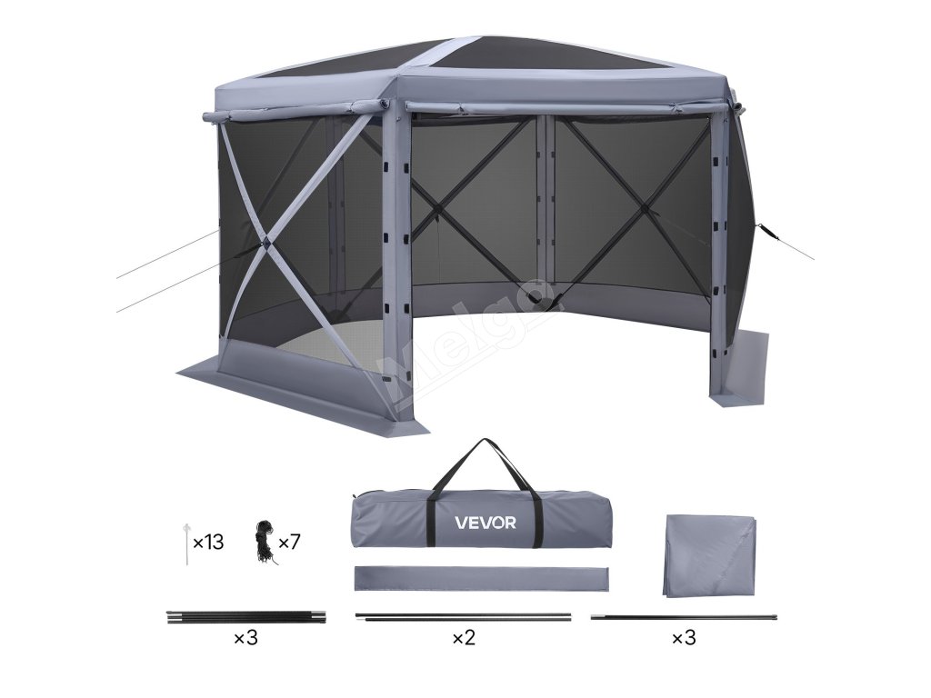 | Materiál | 70G sieťovina + zosilnená 300D oxfordská tkanina s PU povlakom + strieborná strieška + nosné tyče zo sklenených vlákien |