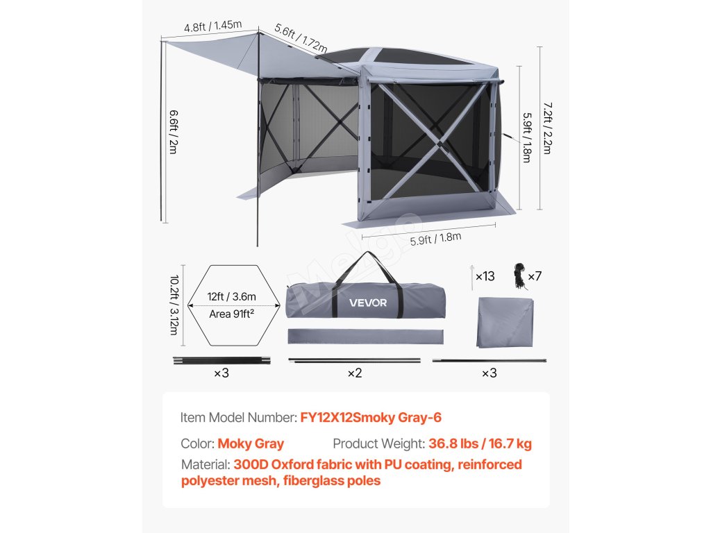 | Rozmery výrobku | 12 × 12 × 7,2 ft / 3,6 × 3,6 × 2,2 m |