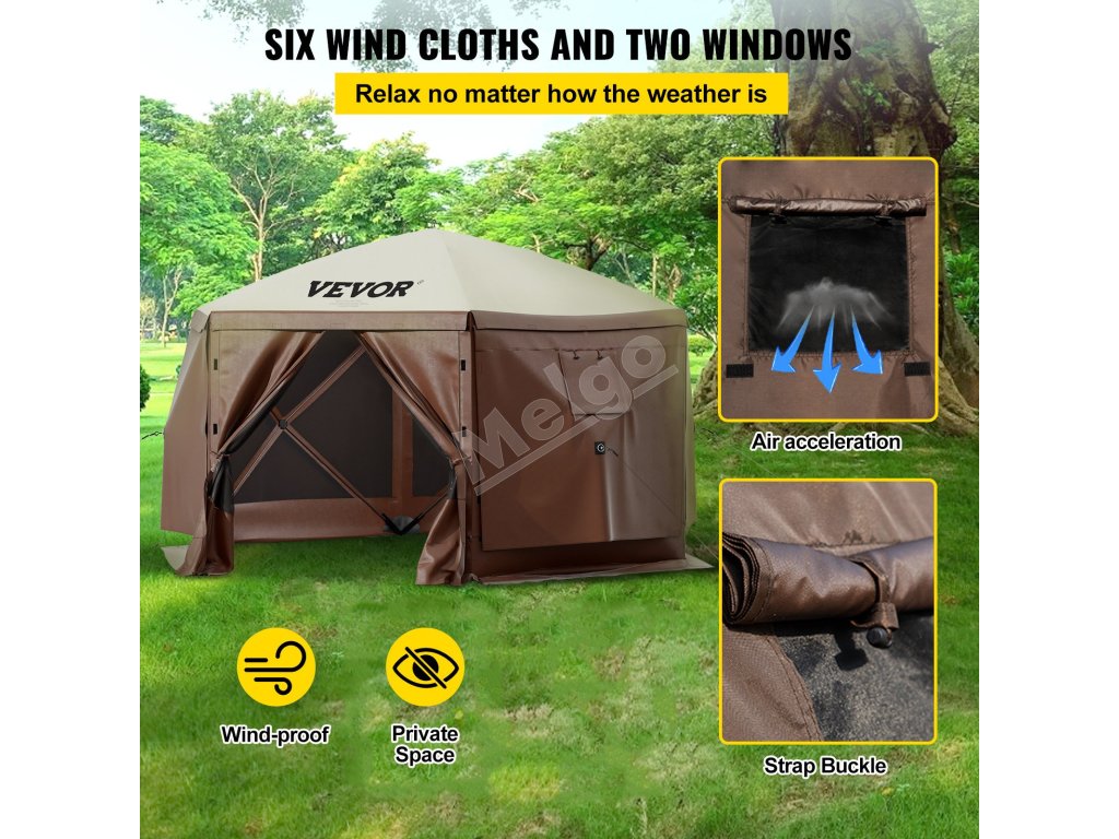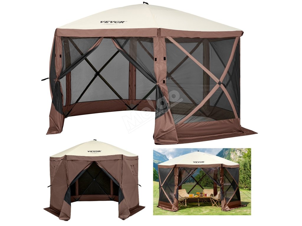 Vďaka hnedo-béžovej farebnej schéme je kempingový altánok so zástenou VEVOR elegantným doplnkom vašej vonkajšej zostavy. Nezáleží na tom, kde ho použijete - či už ide o trávnik a záhradnú párty alebo vonkajší trh, tento stan bude stredobodom pozornosti!
