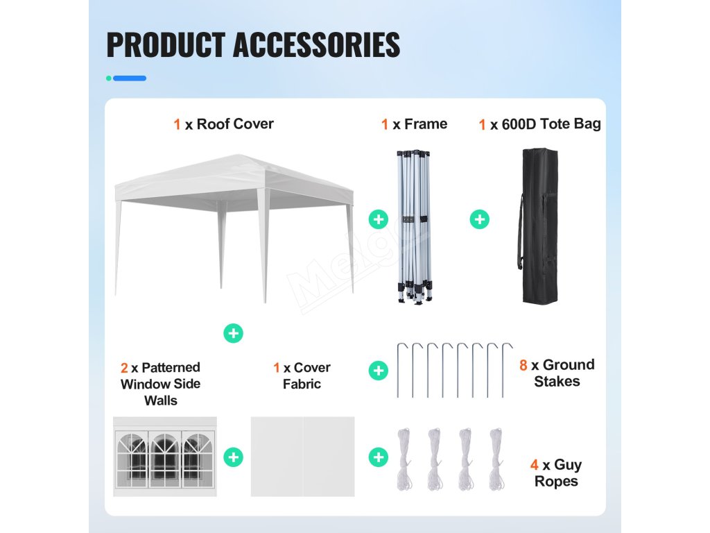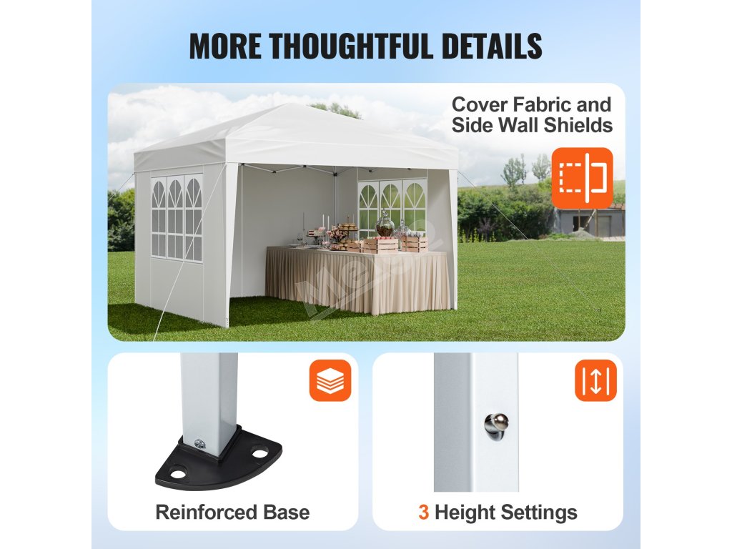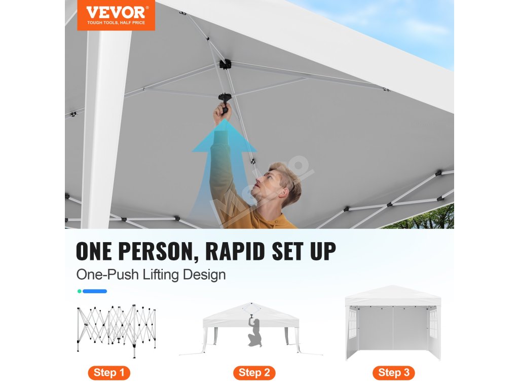 Tento vyskakovací altánok VEVOR 10 x 10 stôp s bočnými stenami s priestrannou plochou 100 štvorcových stôp je ideálny na rodinné stretnutia, grilovanie a iné vonkajšie aktivity. Jeho konštrukcia na jedno zatlačenie zaručuje rýchlu a jednoduchú montáž, vďaka ktorej môžete tráviť viac času užívaním si vonku.