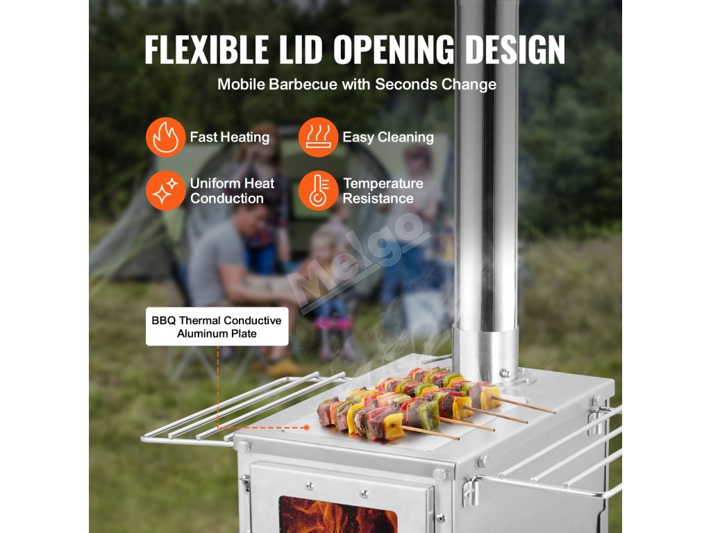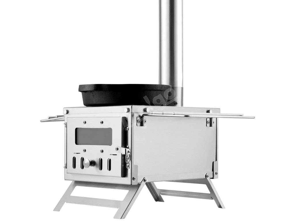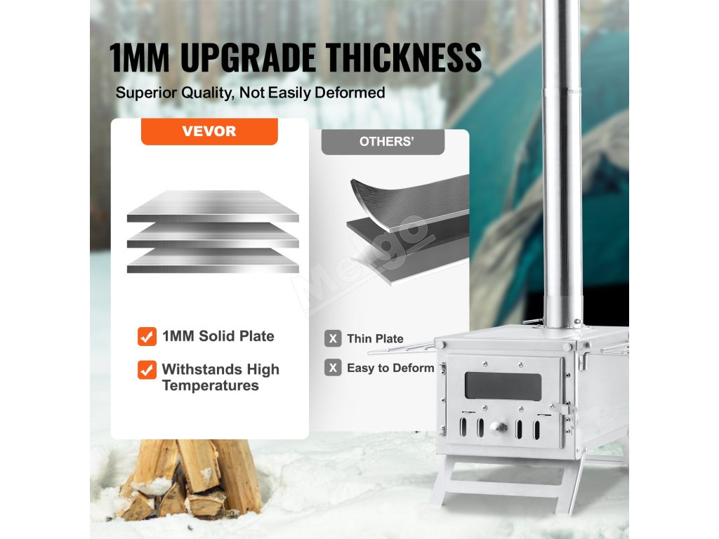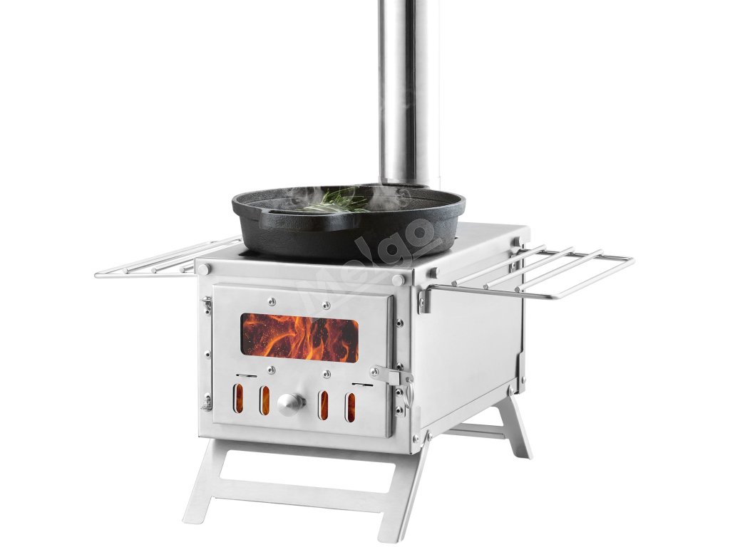 Zhrubnuté panely poskytujú odolnosť a zabraňujú deformácii. Tento mini sporák na drevo je vyrobený zo zliatiny ocele odolnej voči korózii, takže odolá aj náročným podmienkam.