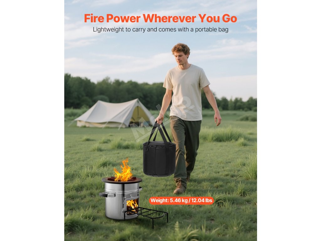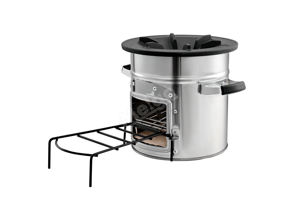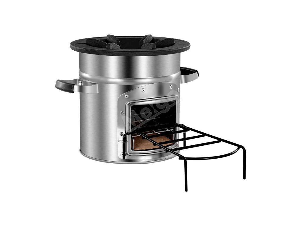 Prenosný raketový sporák na drevo, nerez, s jednými dverami a taškou