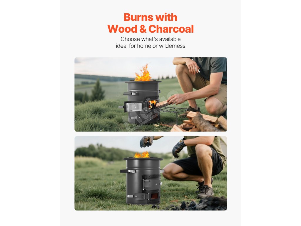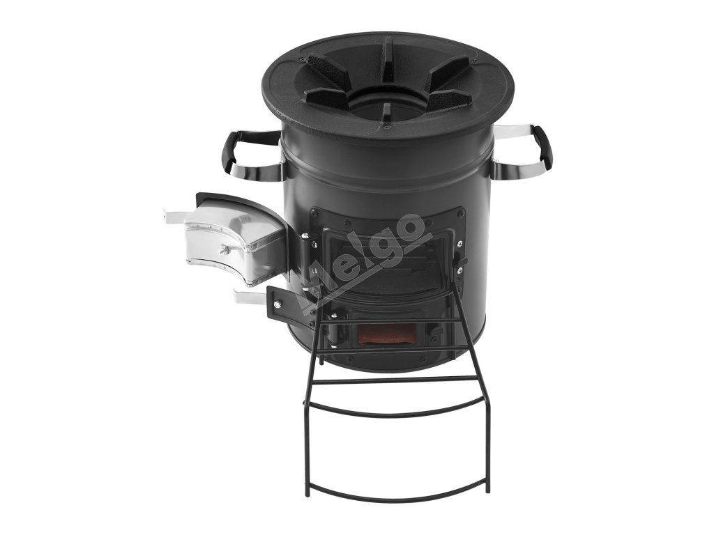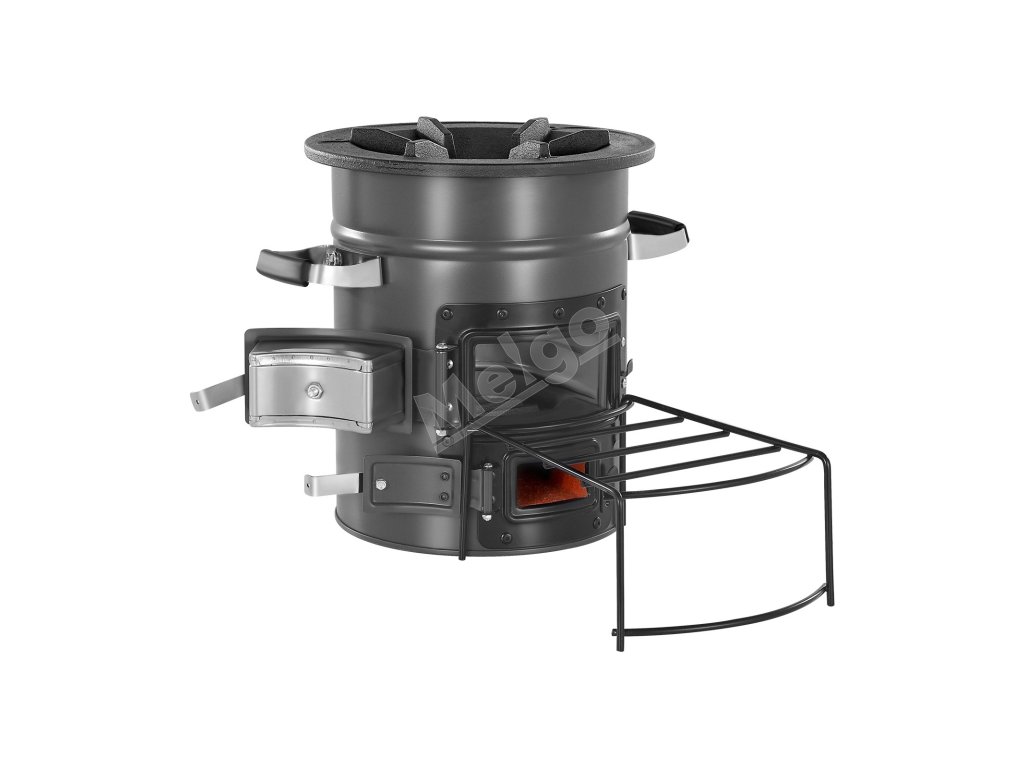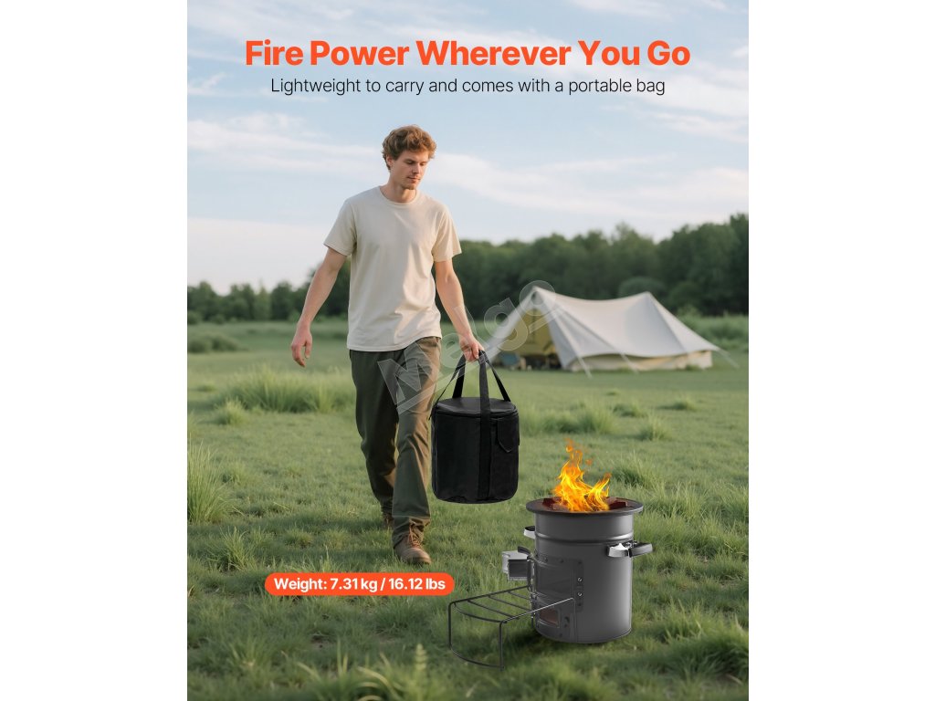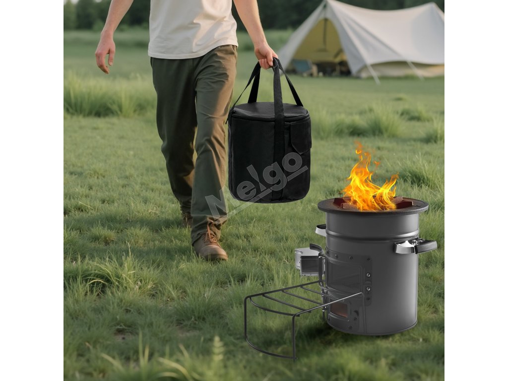 Prenosný raketový sporák na drevo, spcc oceľ, dvojité dvierka, s vakom