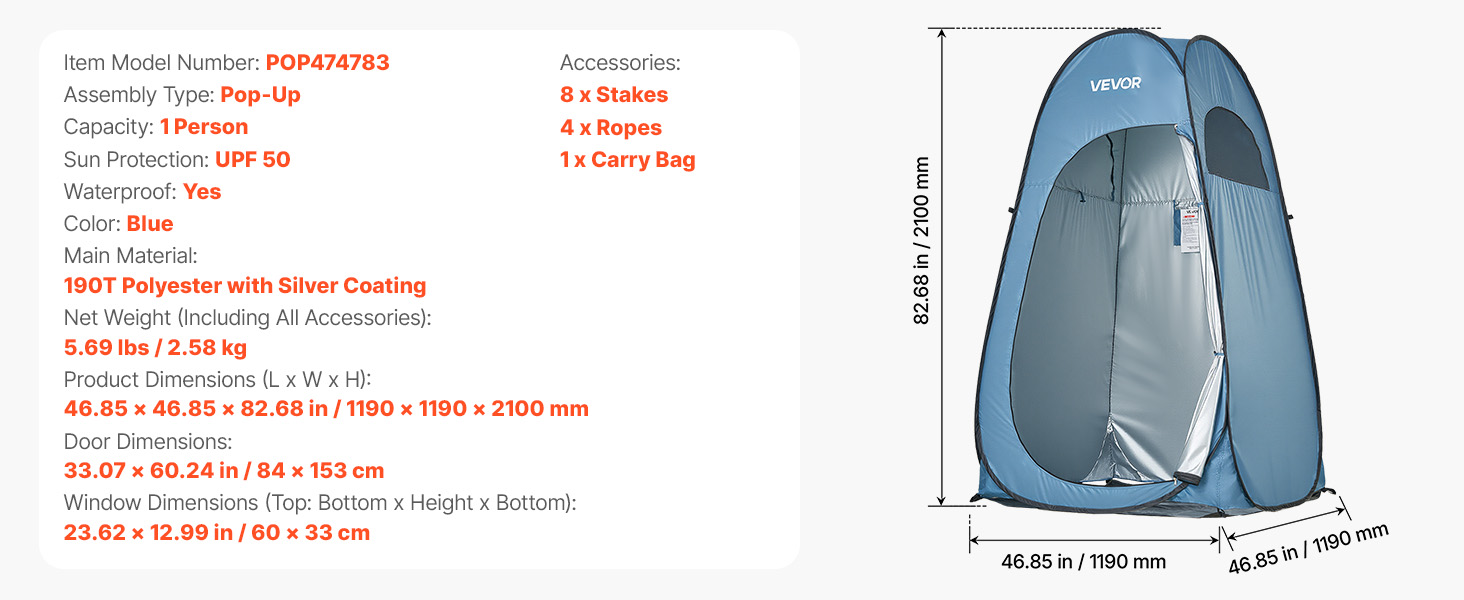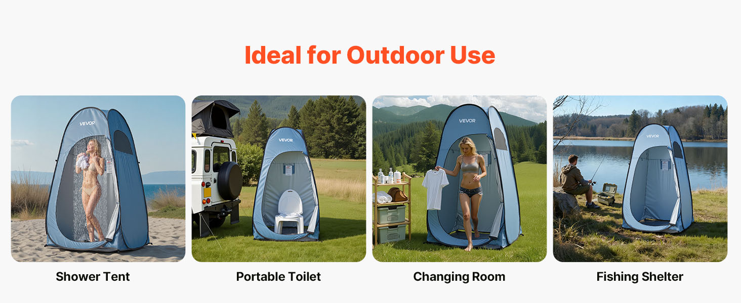 Náš sprchový stan je ľahký a prenosný, vhodný na kempovanie, výlety na pláž, fotografovanie alebo rybolov. Poskytuje súkromný priestor na prezliekanie, sprchovanie alebo oddych vonku.