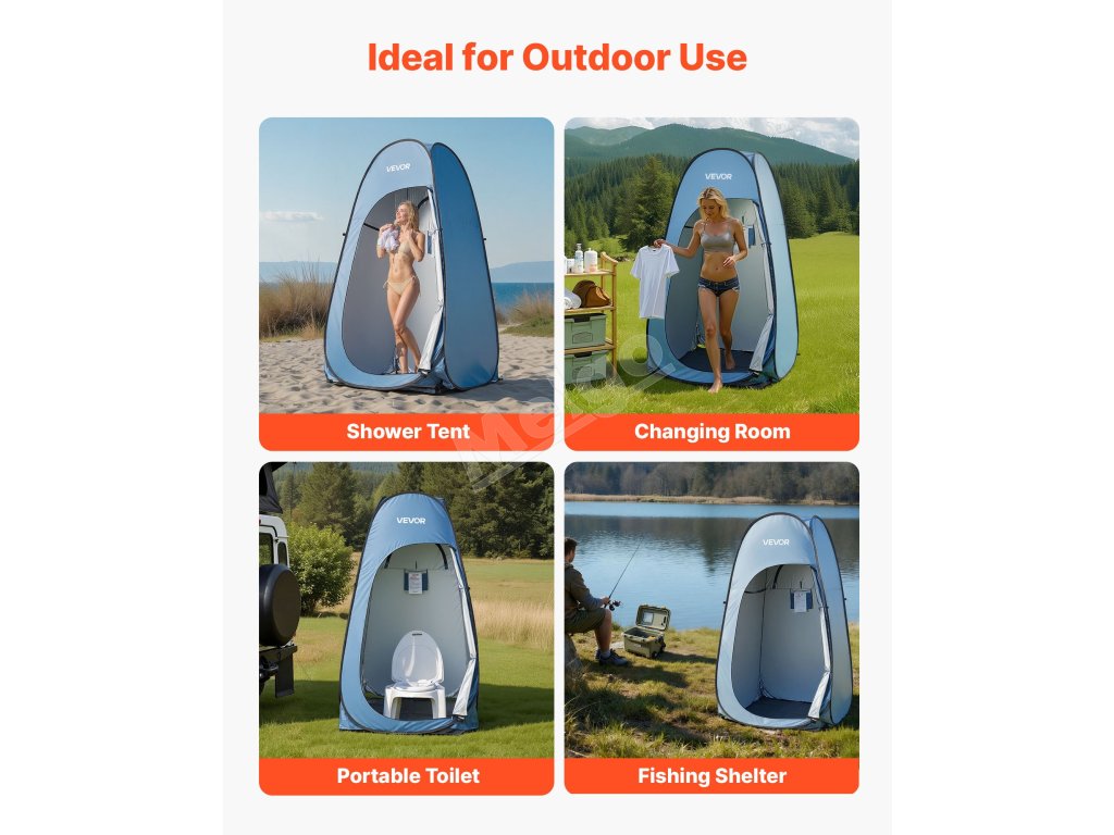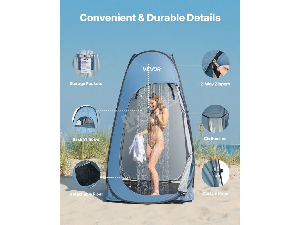 Náš sprchový stan je ľahký a prenosný, vhodný na kempovanie, výlety na pláž, fotografovanie alebo rybolov. Poskytuje súkromný priestor na prezliekanie, sprchovanie alebo oddych vonku.