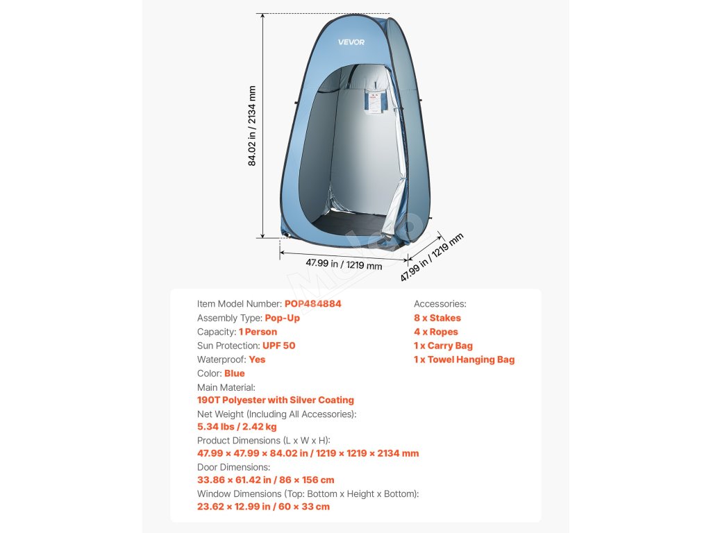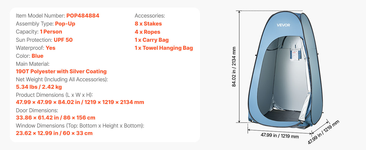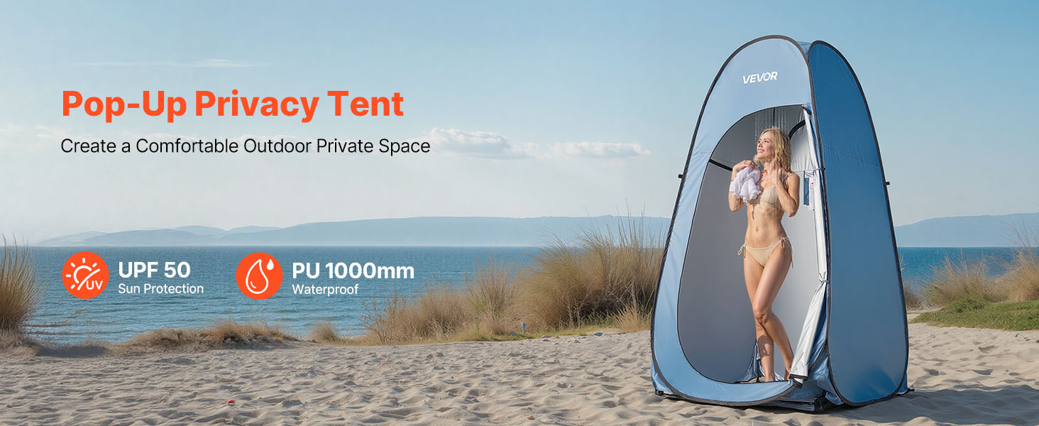 Náš skládací sprchový stan je vyrobený z materiálu s ochranou proti slnku UPF 50 a vodoodolnej tkaniny PU2000 mm, ktorá chráni pred slnkom a dažďom na pláži alebo v kempingu a udržiava vnútro suché a pohodlné.